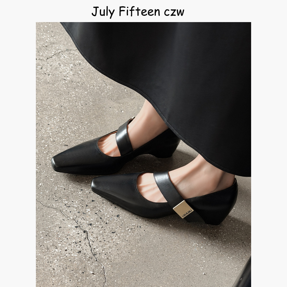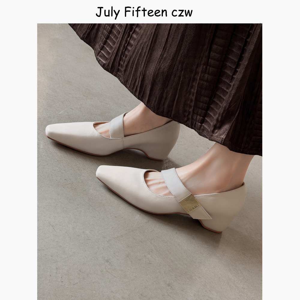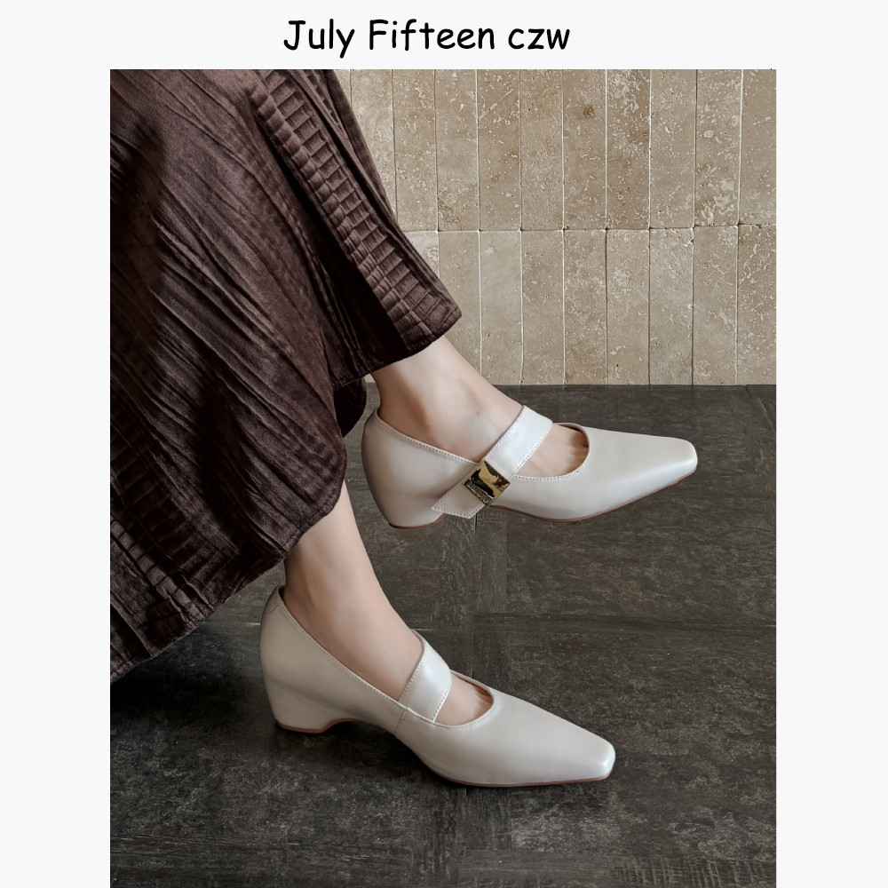 头层牛皮法式优雅风方头玛丽珍鞋女2026新款金属扣内增高浅口单鞋