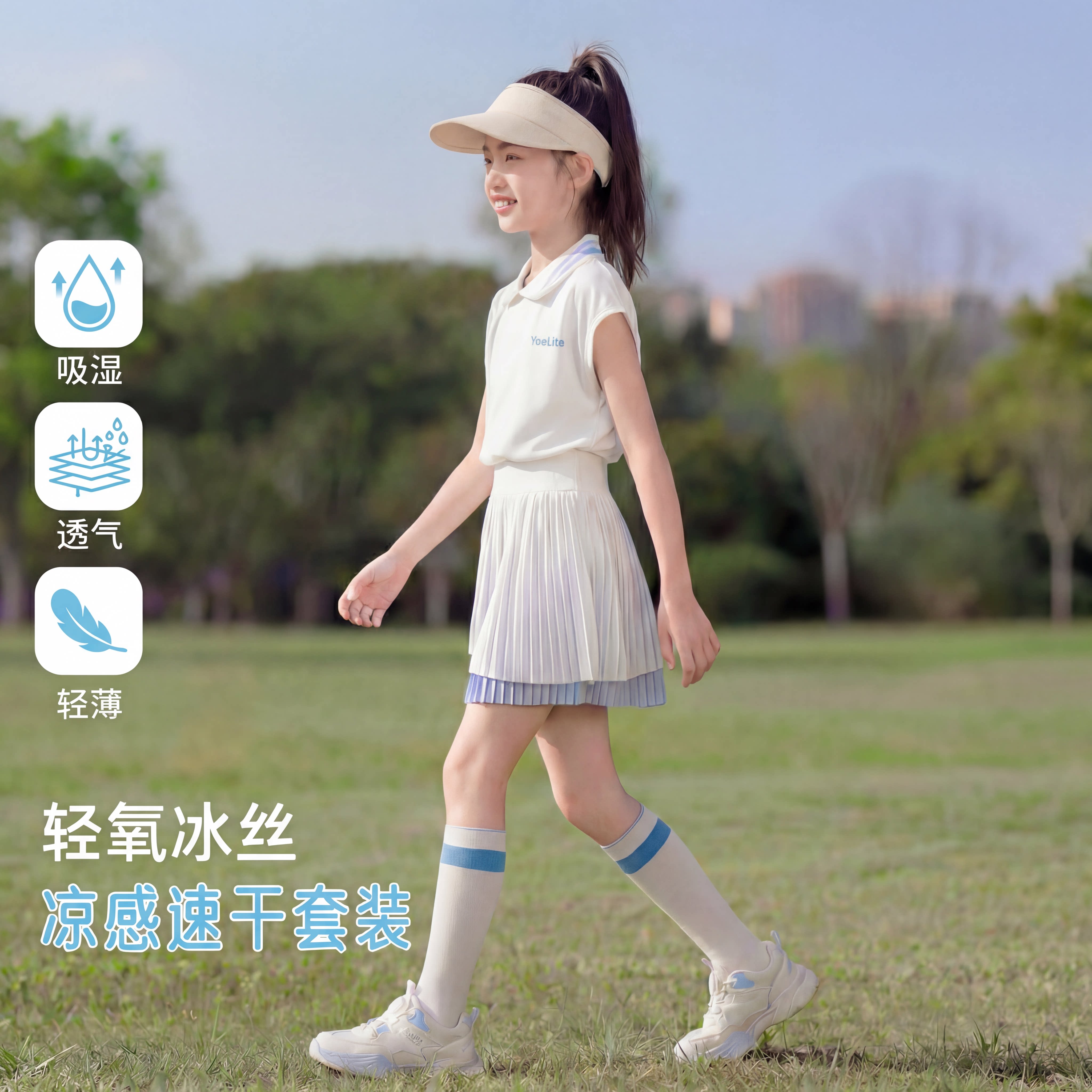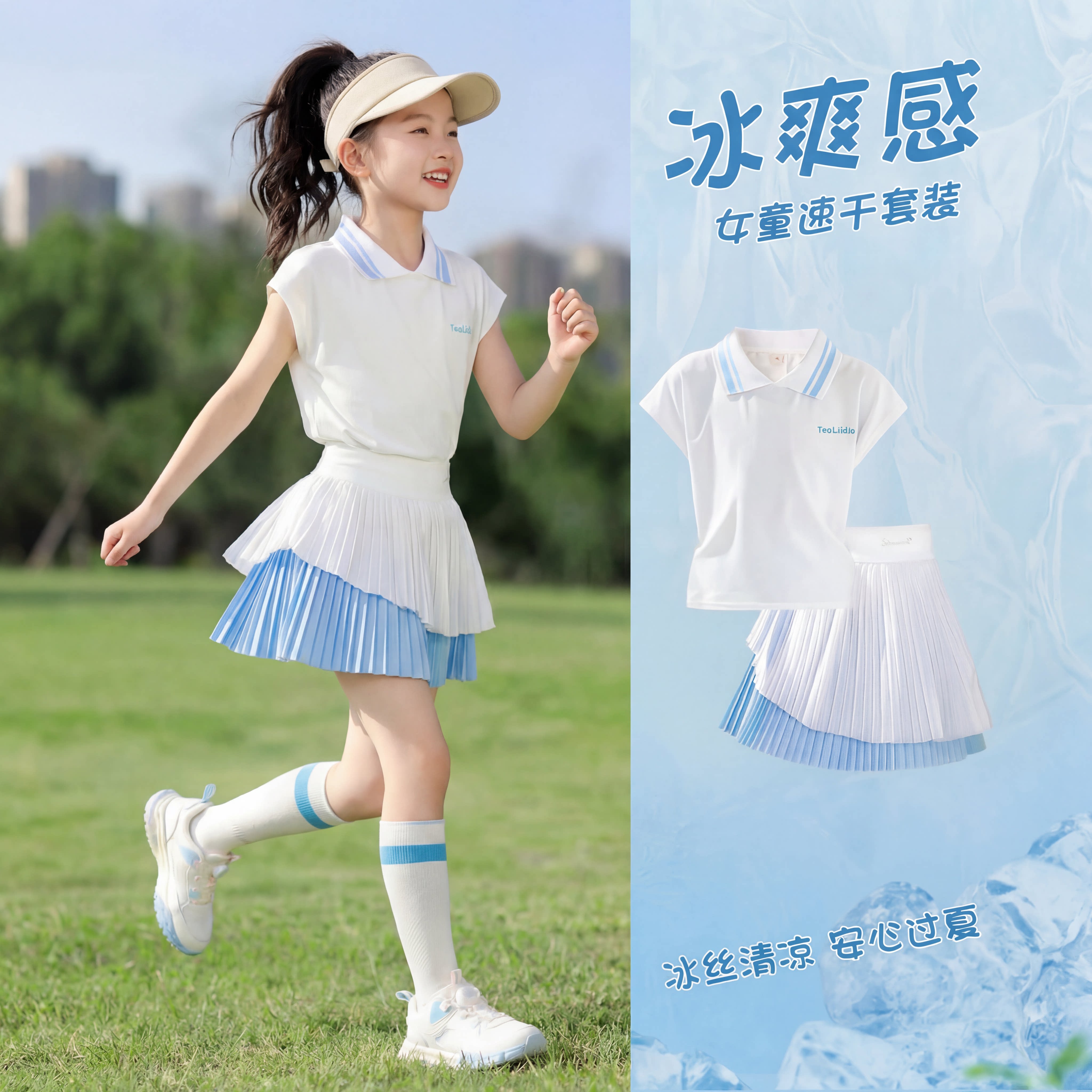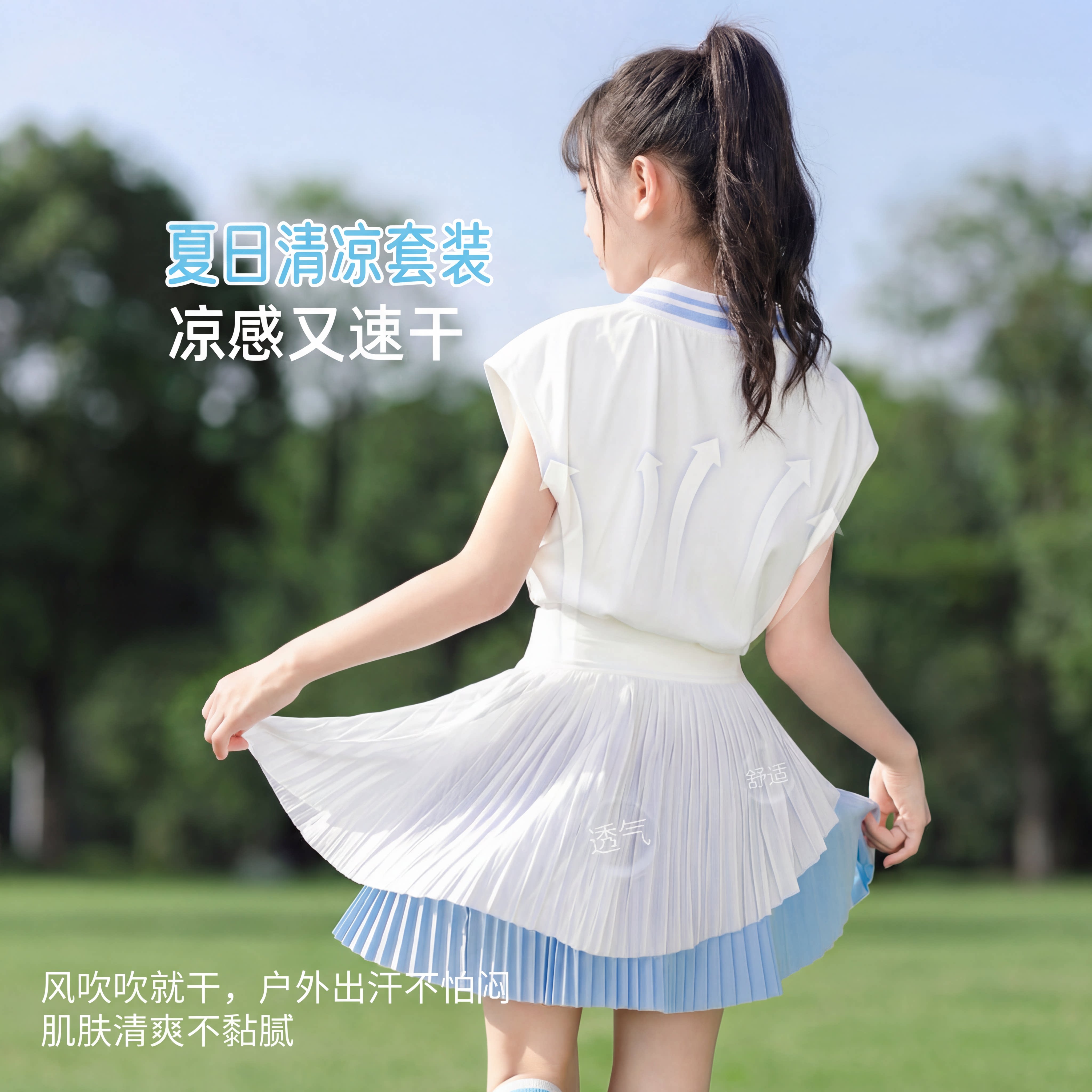 女童速干衣短袖T恤儿童运动套装冰丝薄款羽毛球服训练女大童网球