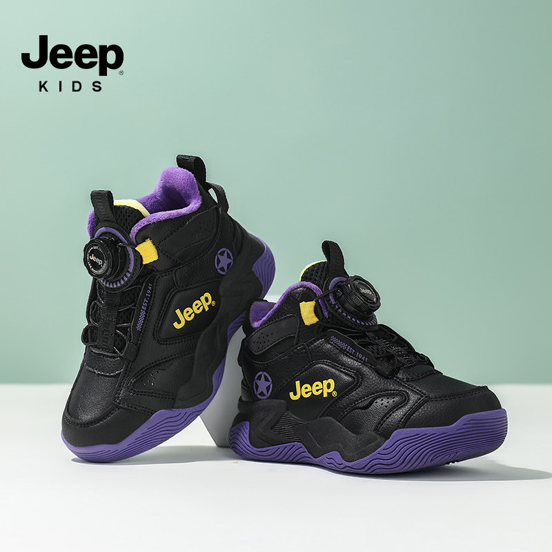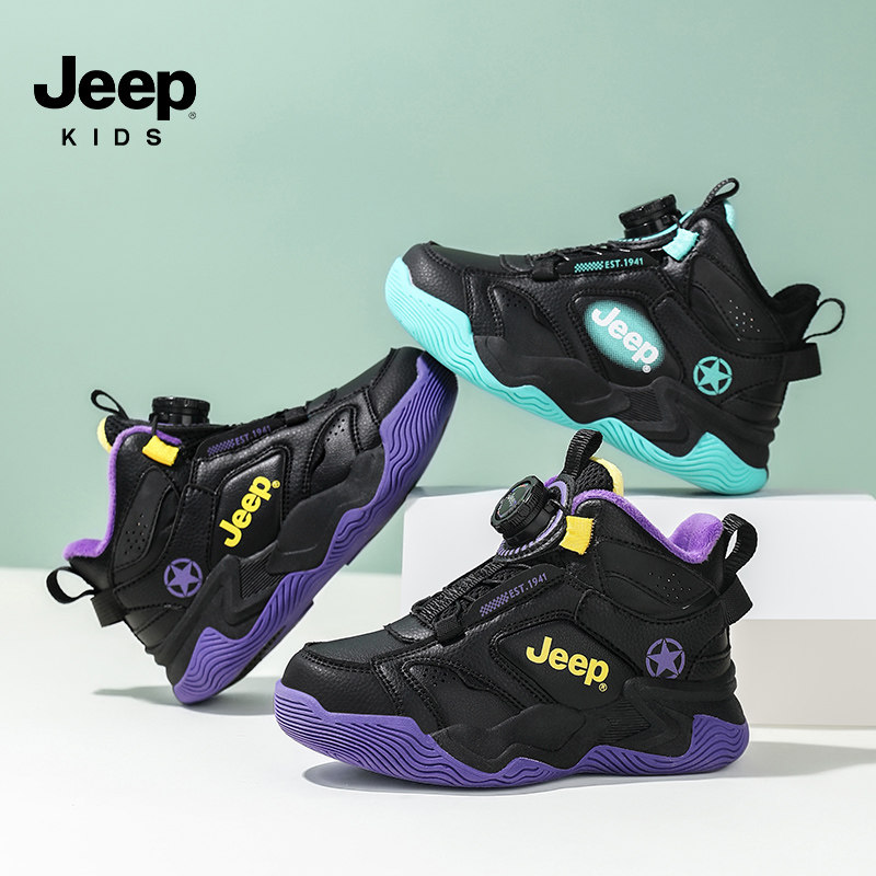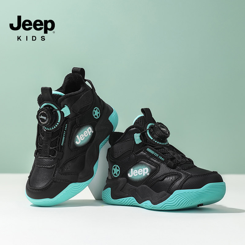 jeep吉普男童鞋子篮球鞋2026春季新款皮面防水防滑男孩儿童运动鞋