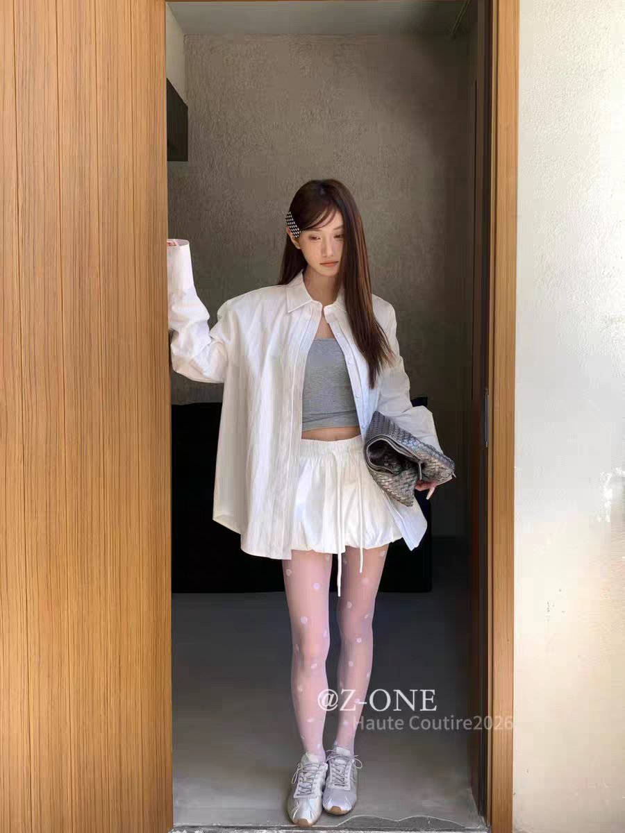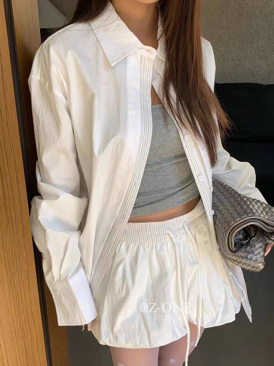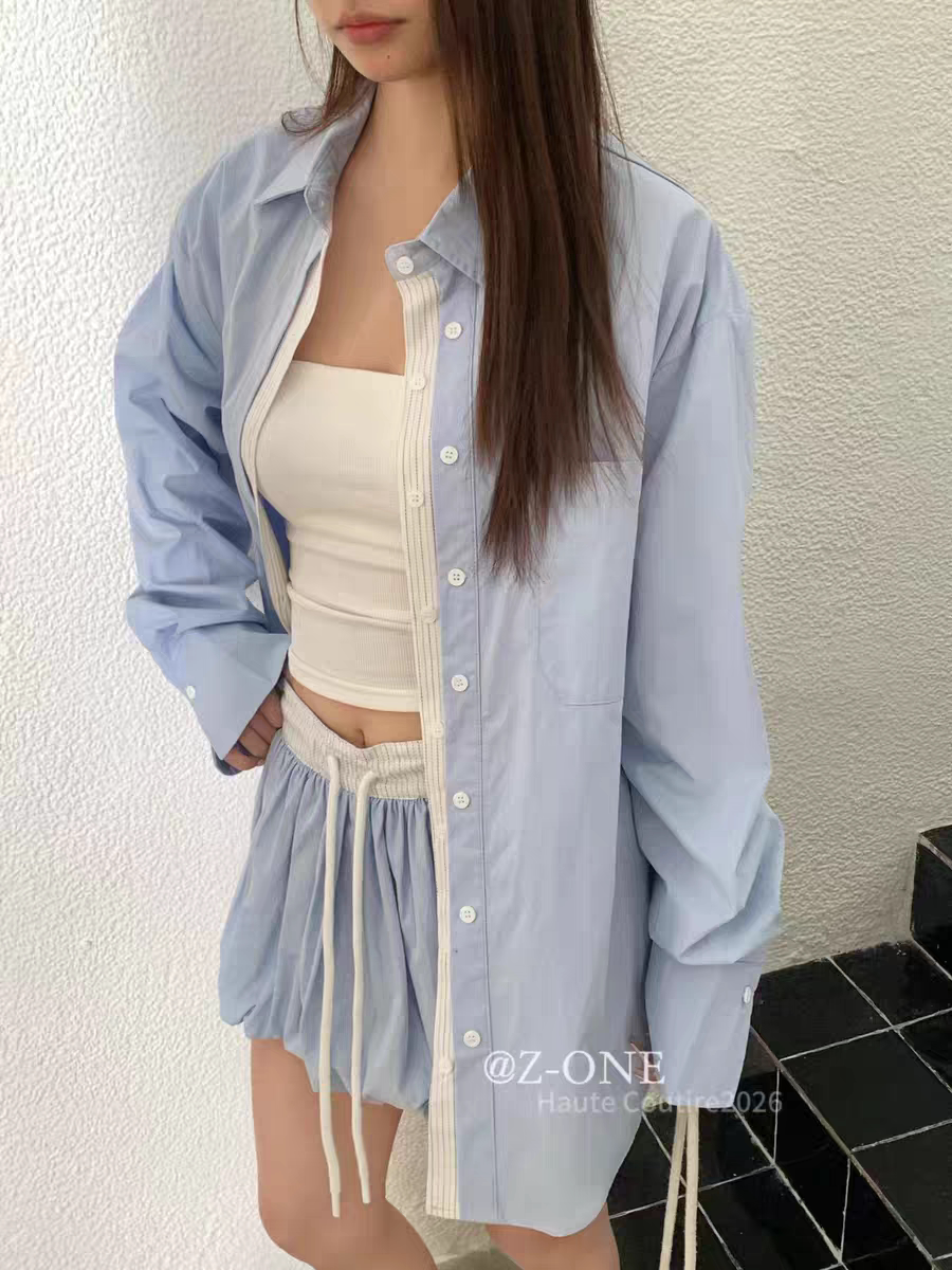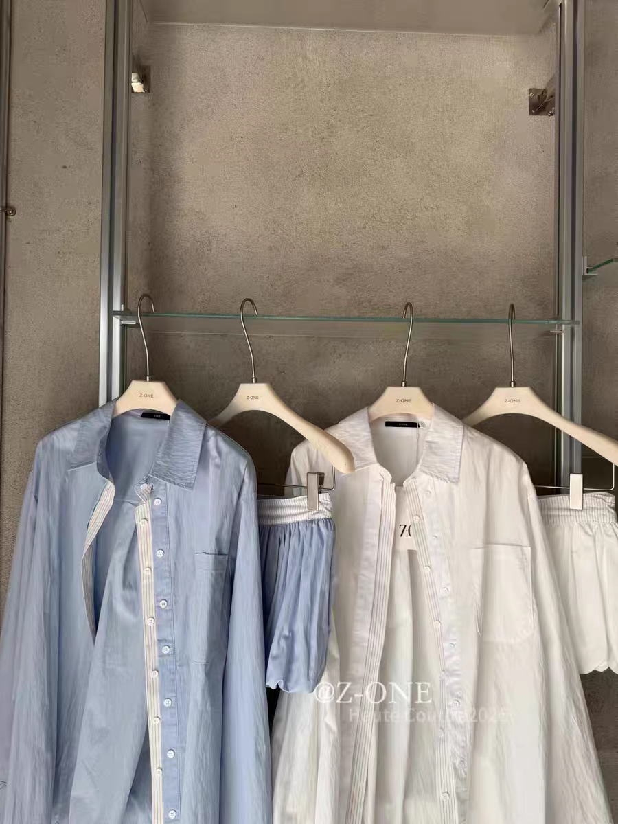 Z-ONE十三行2026年早春新款宽松休闲百搭长袖衬衫短裤两件套装女