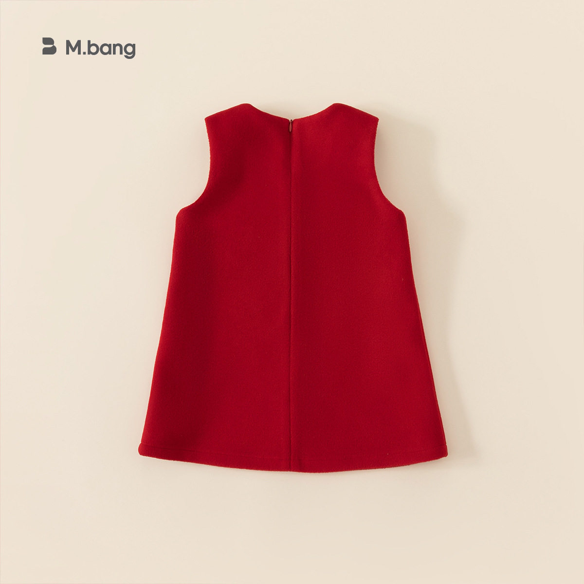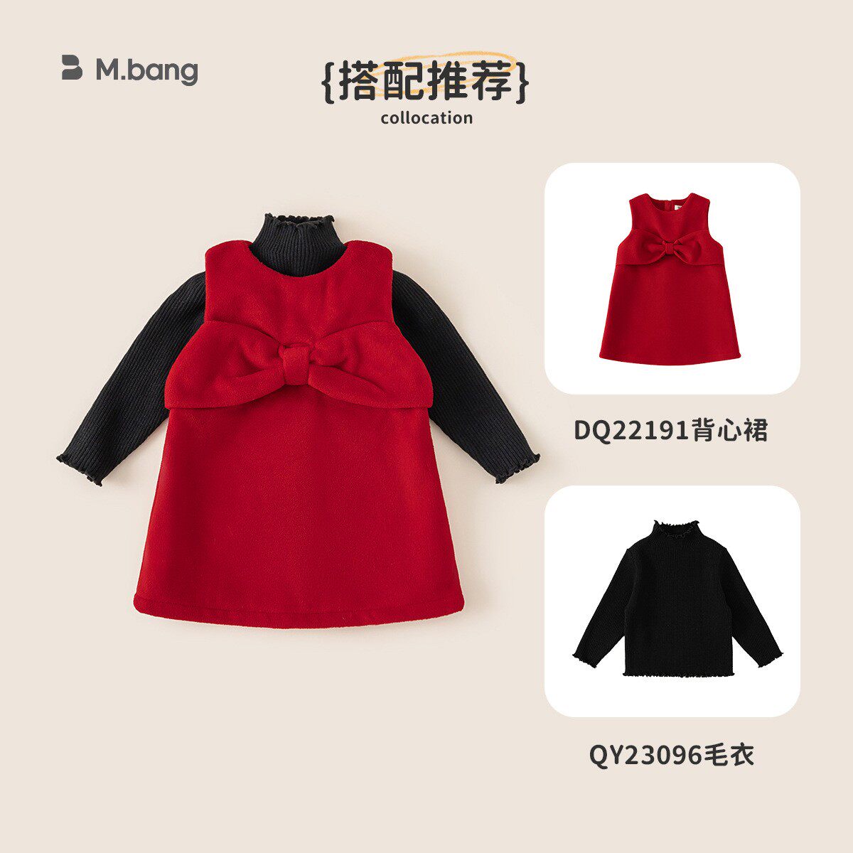 贝贝城女童毛呢子背心裙秋冬款儿童蝴蝶结连衣裙宝宝红色周岁礼服