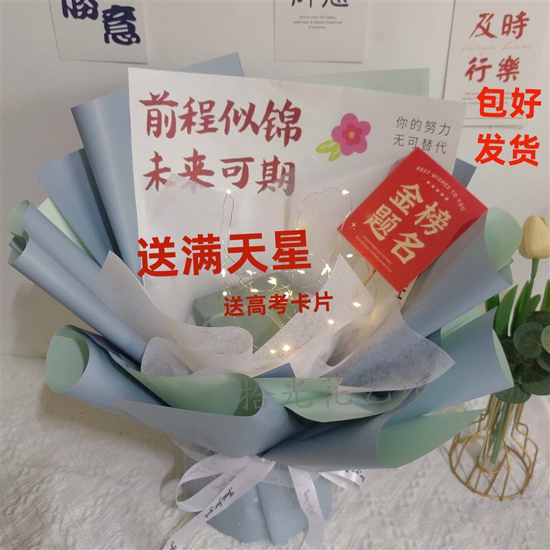 DIY免包半成品高考花束壳花筒外包装金榜题名鲜花玩具满天星礼物