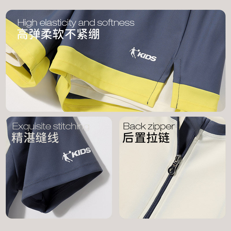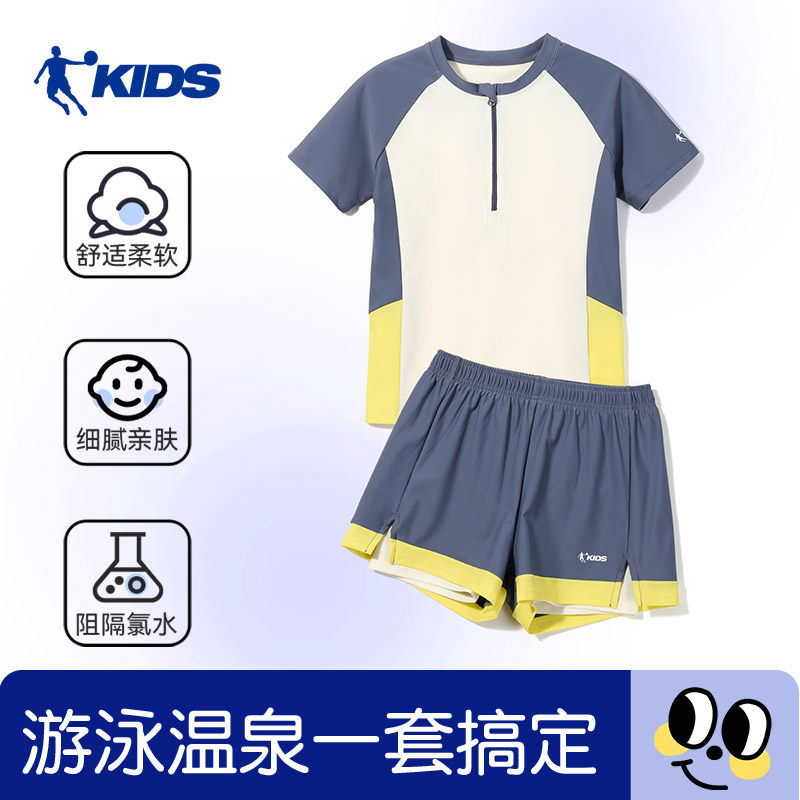 乔丹儿童泳衣男童中大童2026新款男孩分体游泳衣专业训练短袖套装