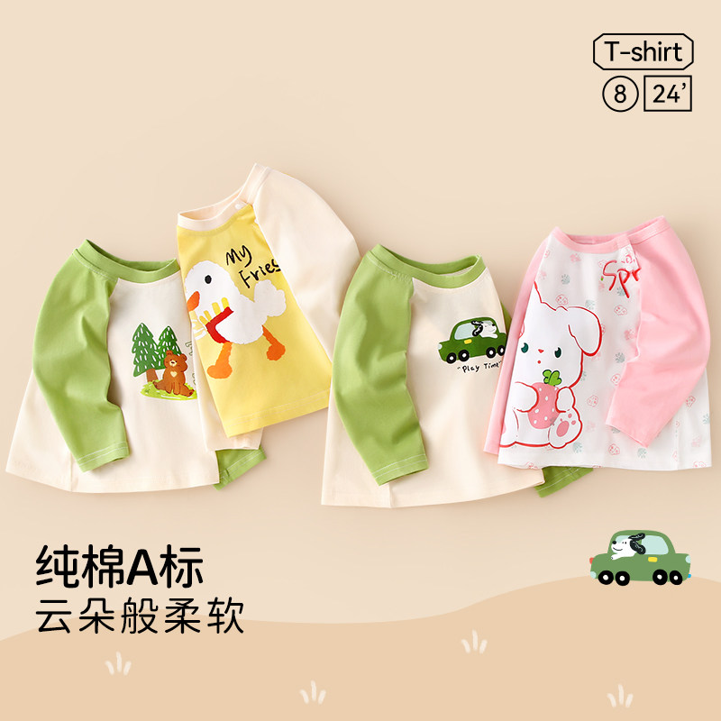 婴儿长袖t恤纯棉宝宝上衣春秋男童秋装女童秋季新款打底衫a类薄款