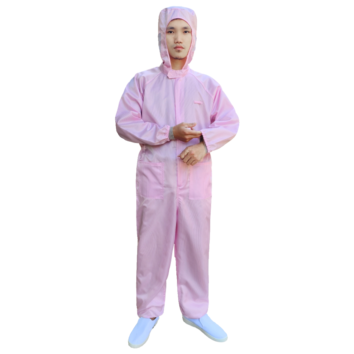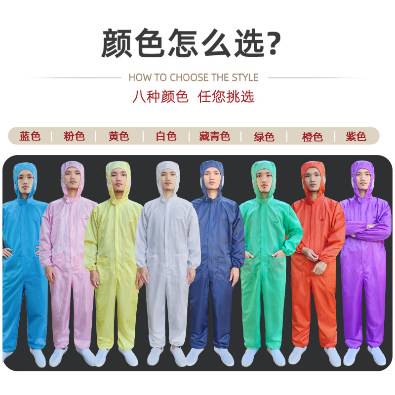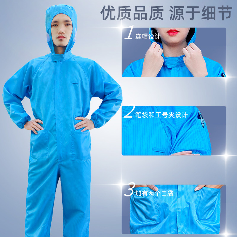 无尘服连体连帽男女全身防尘工作服带口袋蓝橙色喷漆防静电防护服