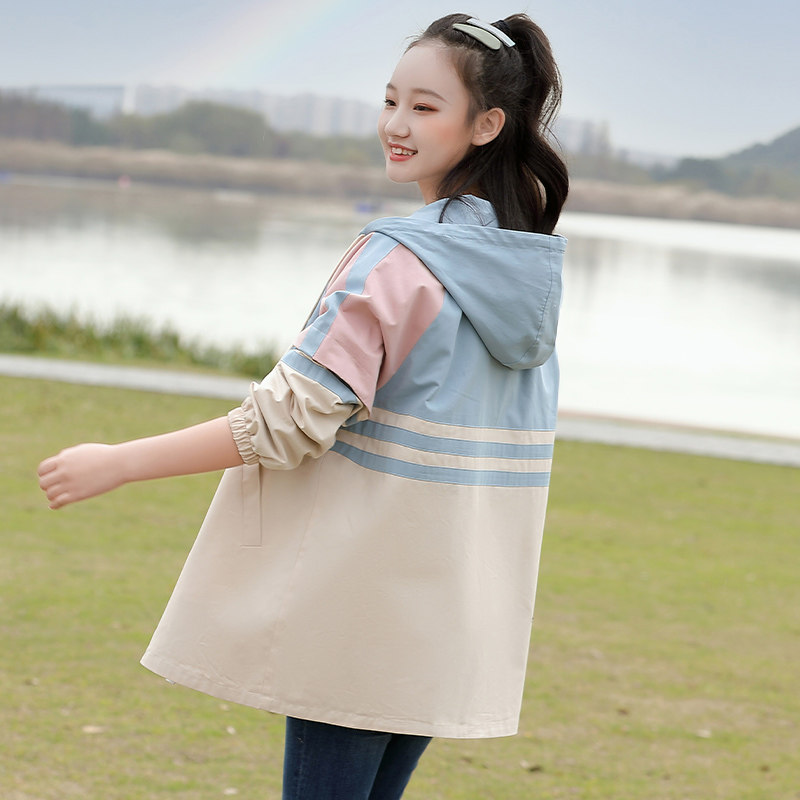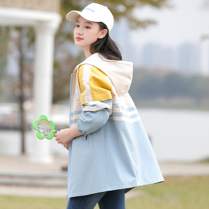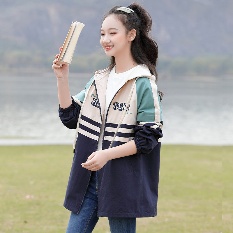 初中学生风衣女春季外套中长款2026春装新款高中连帽上衣学院风