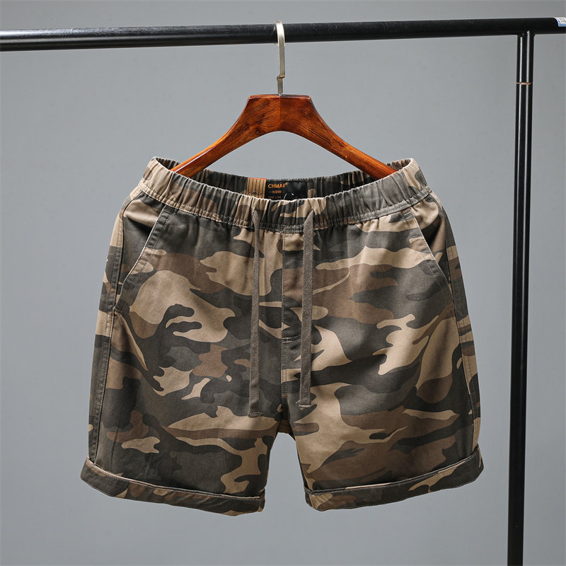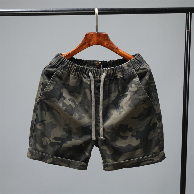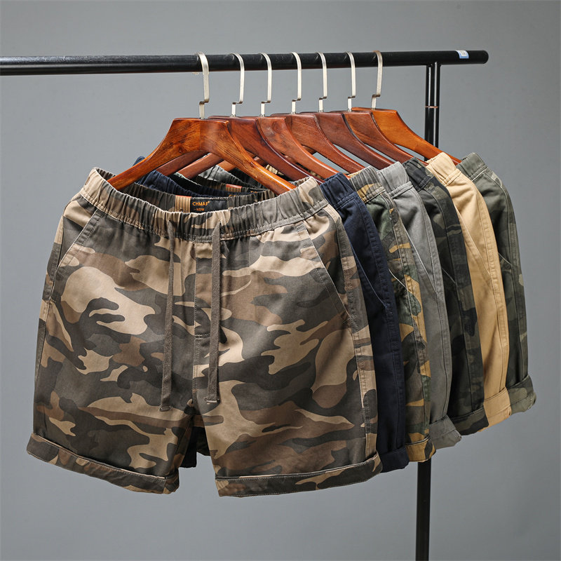 夏季美式复古做旧慢跑短裤 纯棉宽松三分裤运动跑步迷彩收腰抽绳