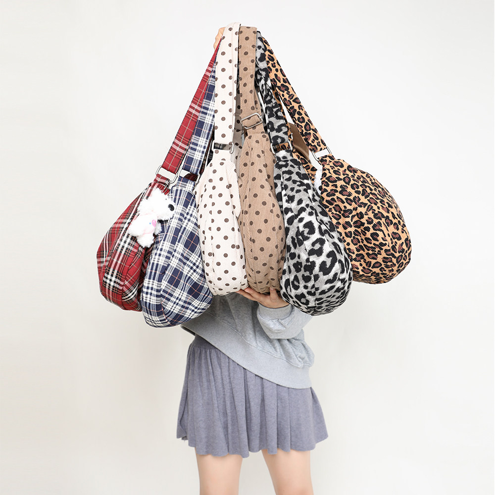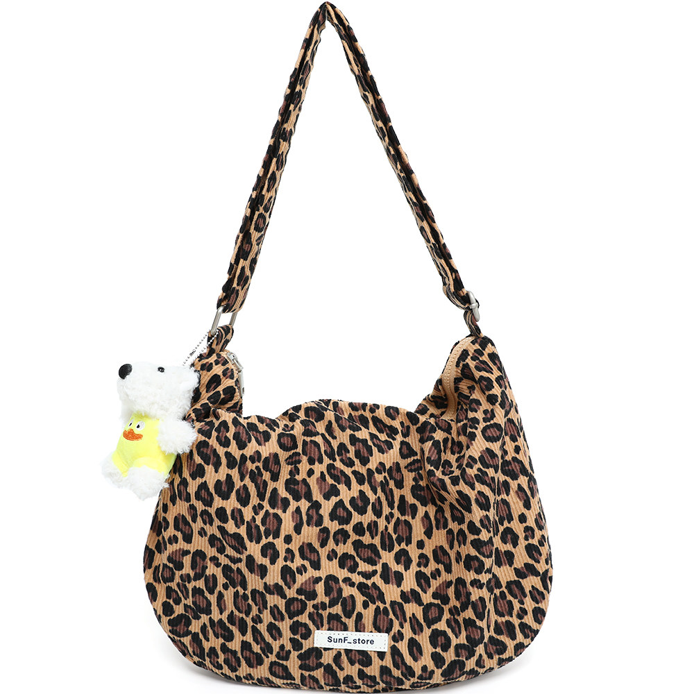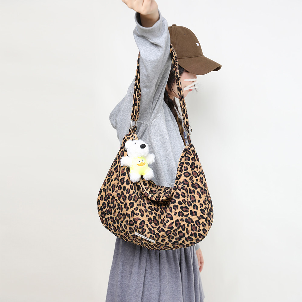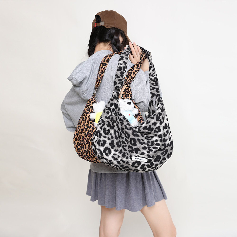EHOOO豹纹帆布包大容量斜挎包女2025春季包包大学生上课包饺子包