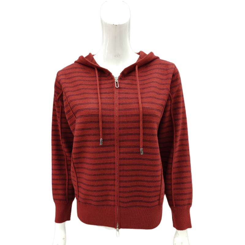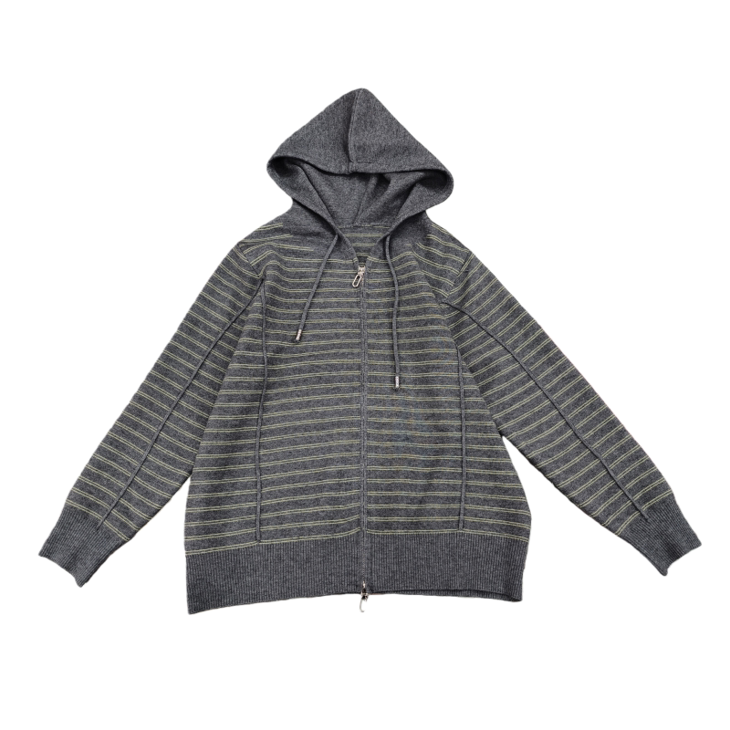 2026早春新款连帽双拉链针织条纹开衫女装卫衣外套显年轻长袖上衣