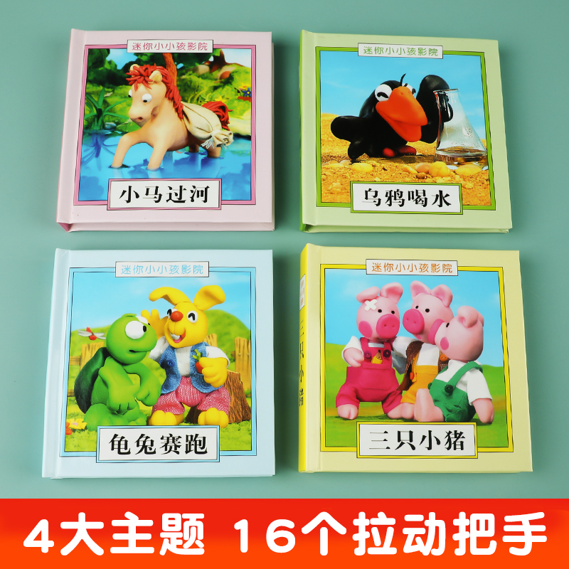 迷你小小孩影院全套4册 宝宝推拉书幼儿互动式寓言童话故事绘本0到3岁早教认知书一岁半两岁宝宝专注力提升动手动脑益智玩具书