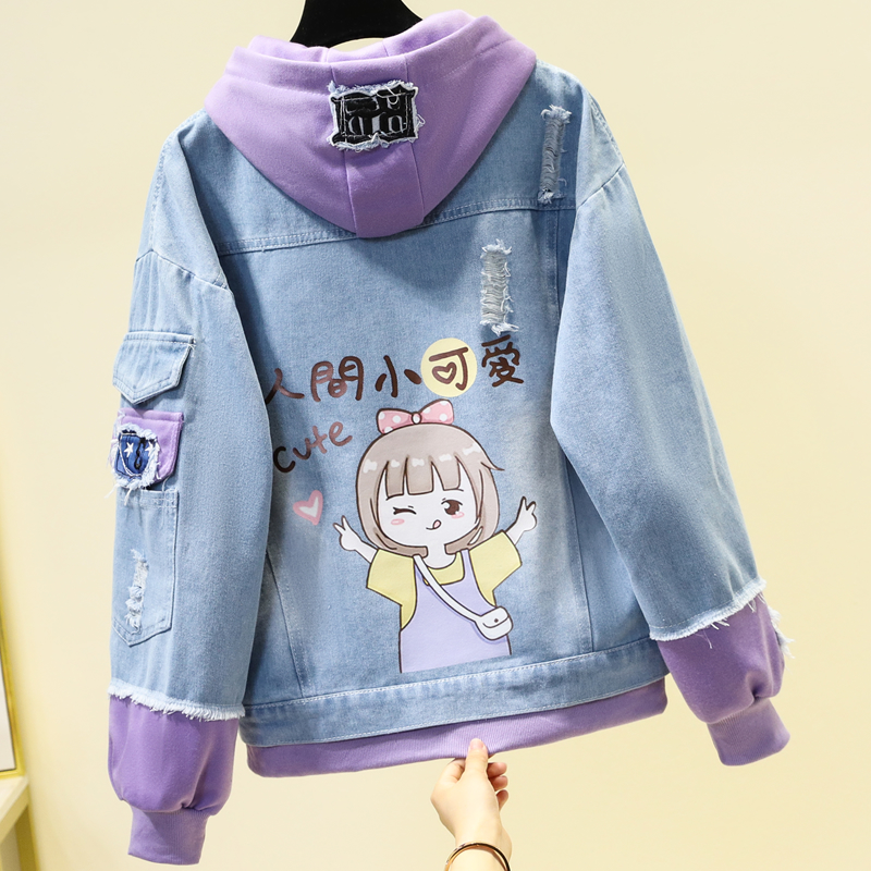 少女春装外套上衣韩版宽松百搭休闲可爱初中学生大童洋气牛仔夹克