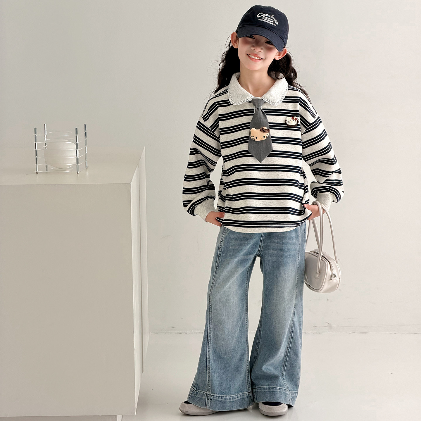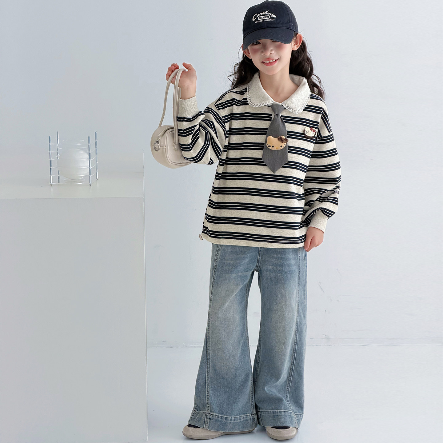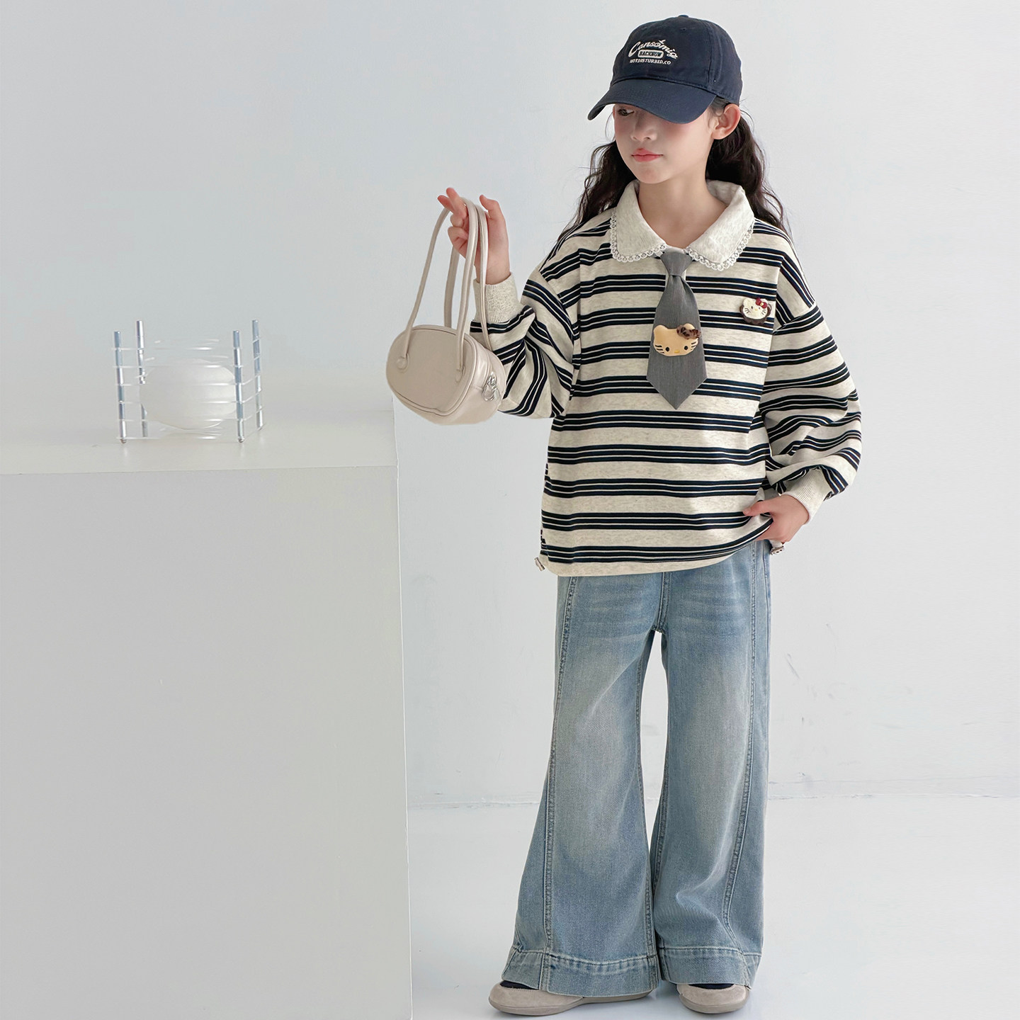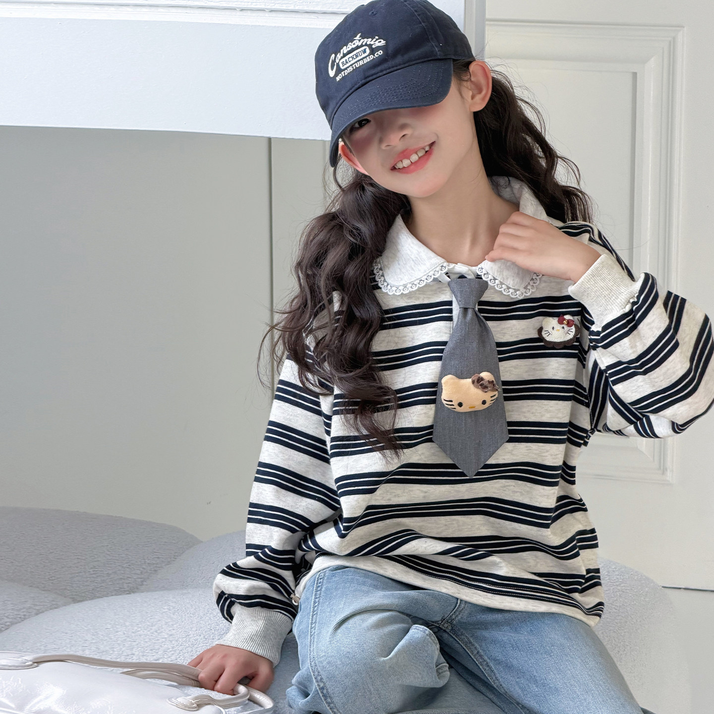 女童春装卫衣2026新款洋气儿童条纹POLO领学院风女孩休闲长袖上衣