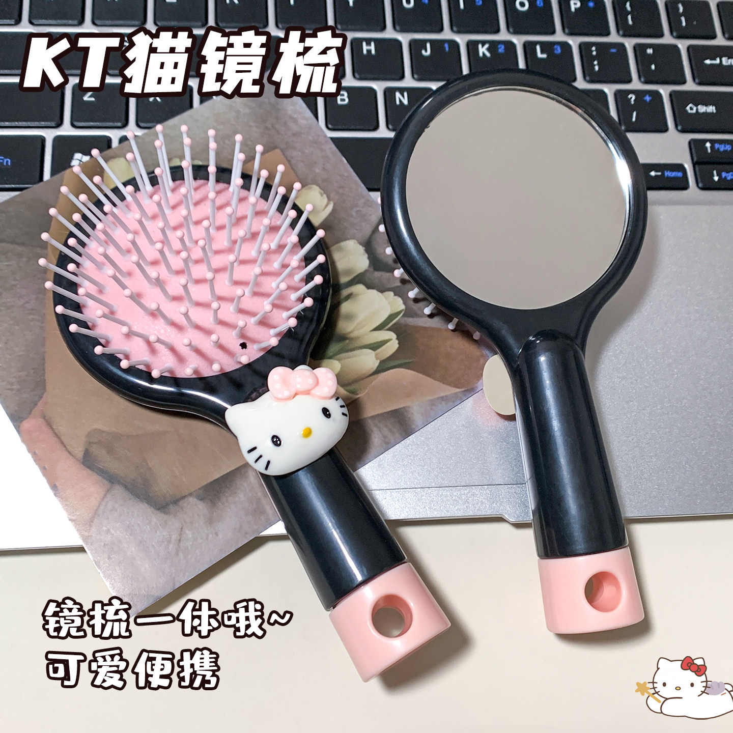 Kitty猫二合一气囊梳子新款小巧可爱卡通气垫便携按摩迷你带镜子