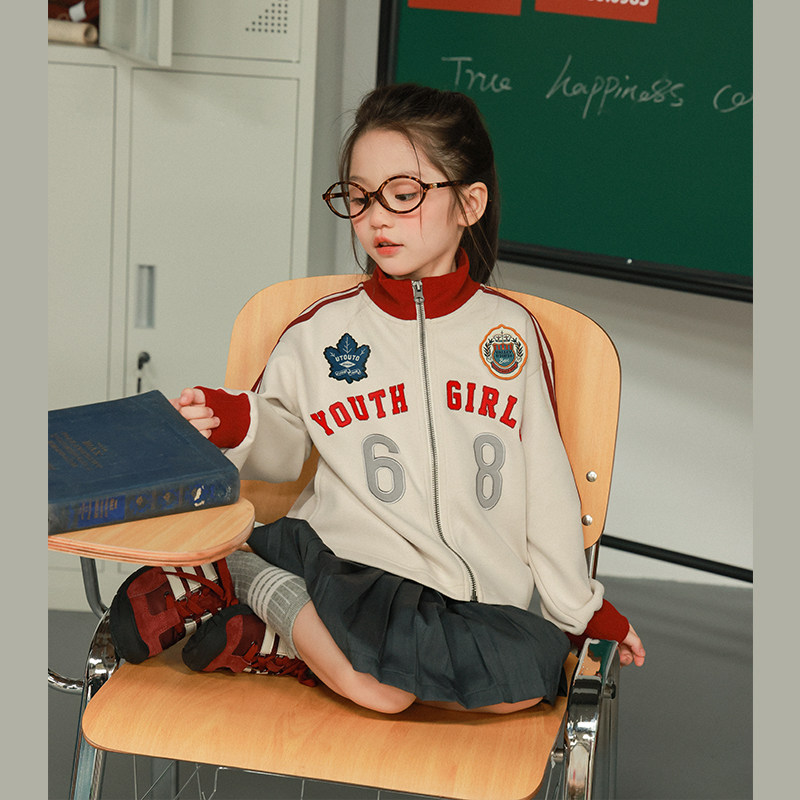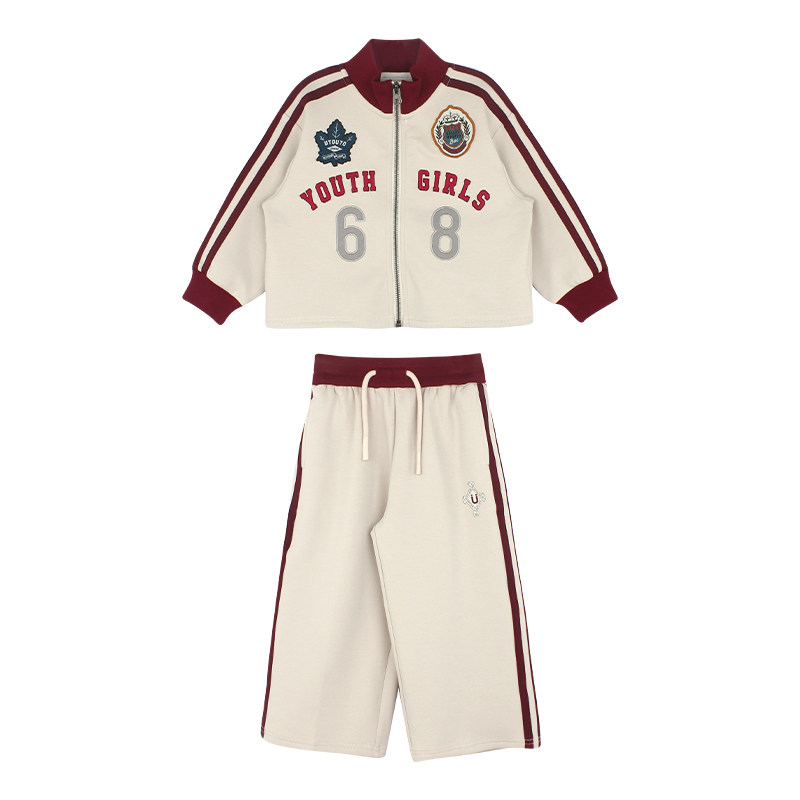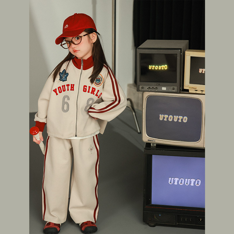 大耳象女童章仔撞色外套直筒裤秋季新款宝儿运动休闲长袖套装