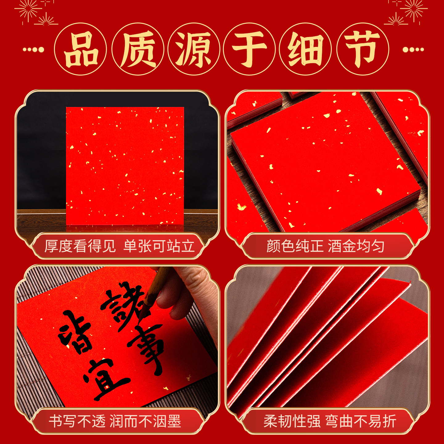 万年红洒金宣纸卡纸加厚正方形小尺寸手写福字红纸斗方专用小号半生熟作品纸练字卡片书法文化墙方块文创福卡