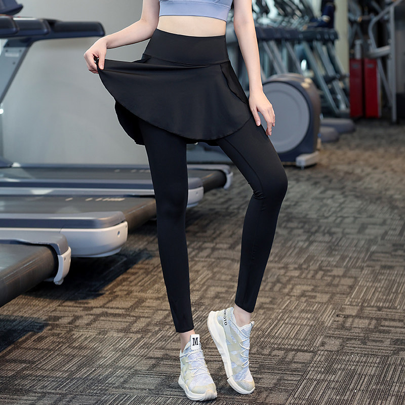 秋季大码运动瑜伽裤裙健身跑步速干假两件一体宽松女遮挡裙裤外穿