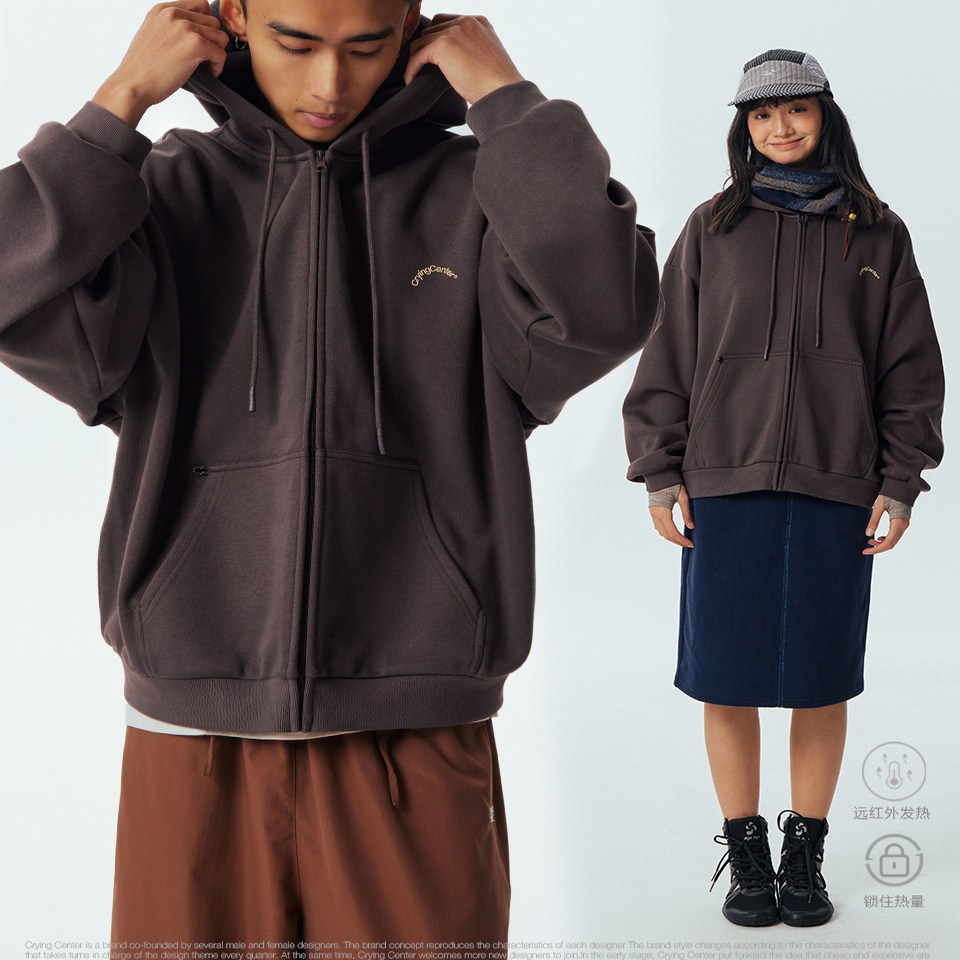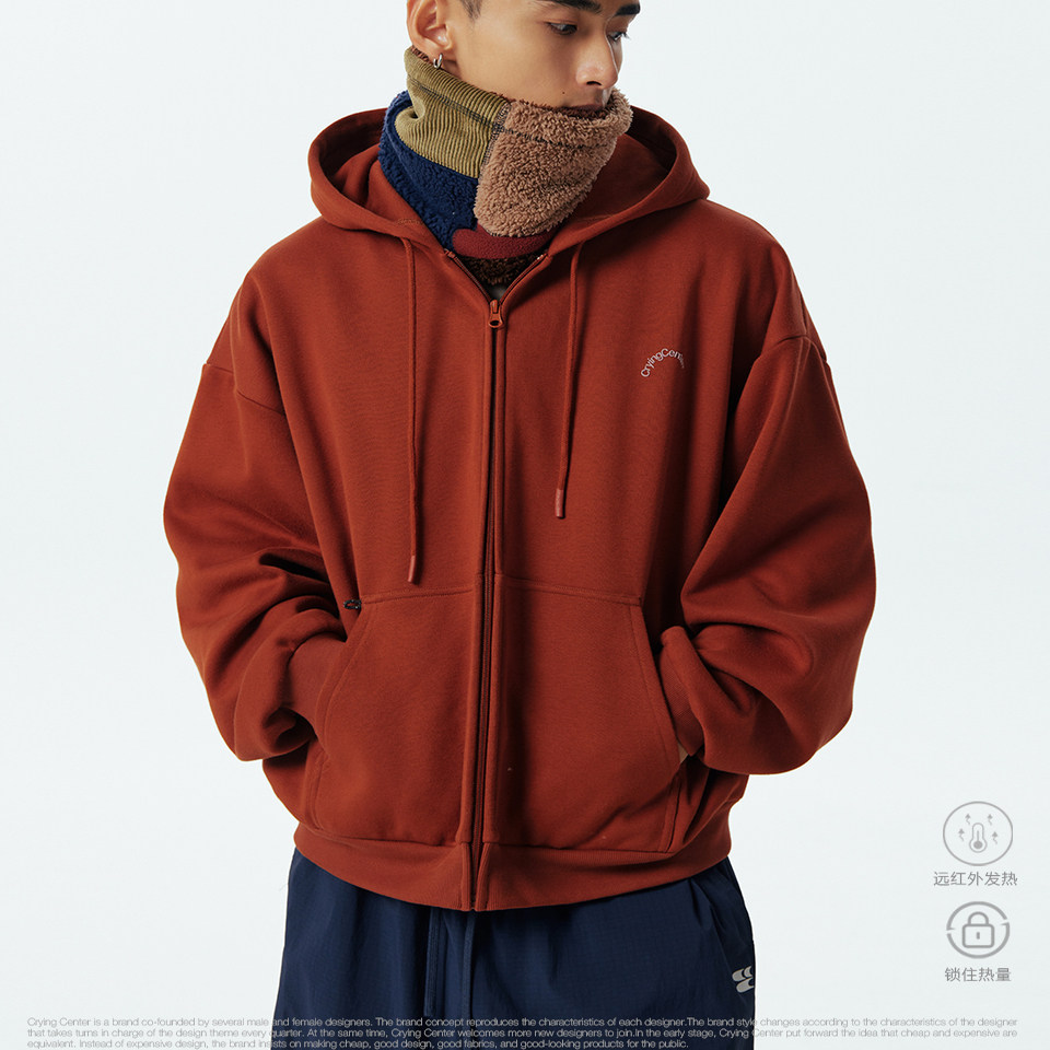 CryingCenter远红外自发热基础款拉链连帽加绒卫衣男女款哭喊中心