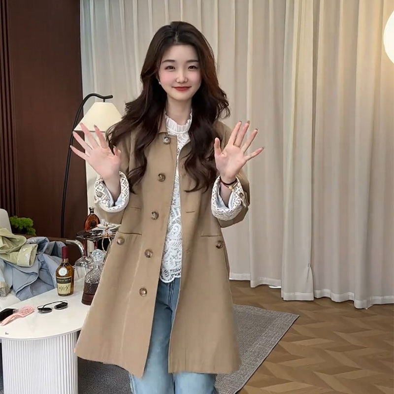 2026新款韩系今年流行爆款小个子中长款休闲蓝色风衣外套女款春季