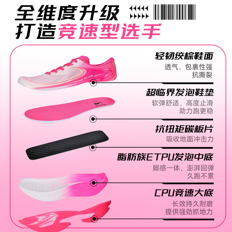 星火力音速1.0碳板跑鞋男女款专业竞速运动鞋中考体育专用跑步鞋