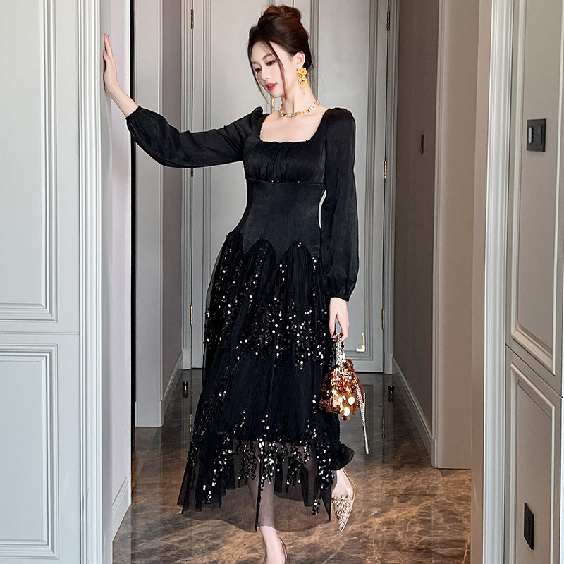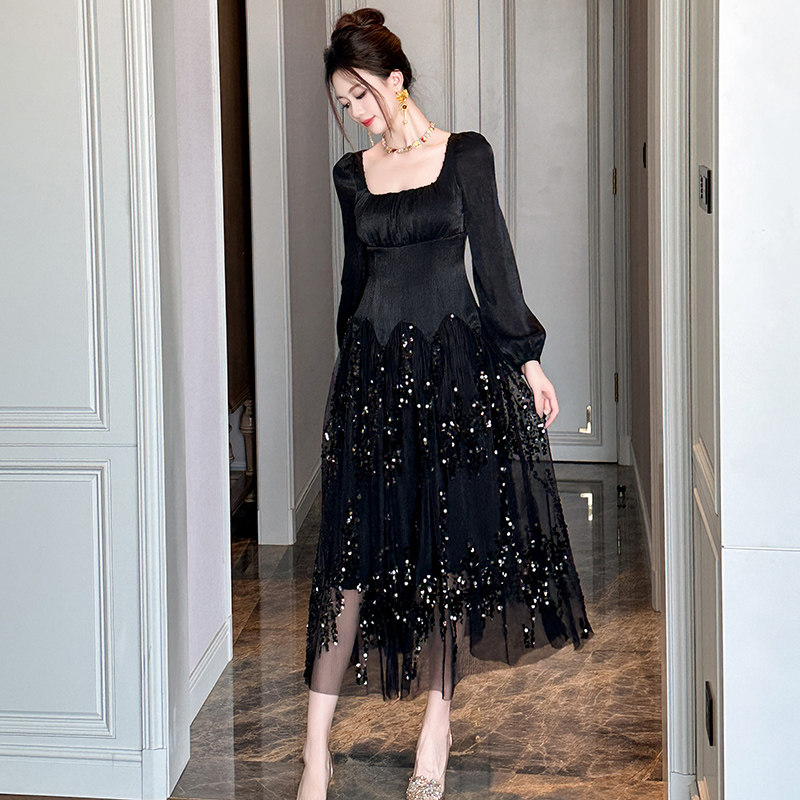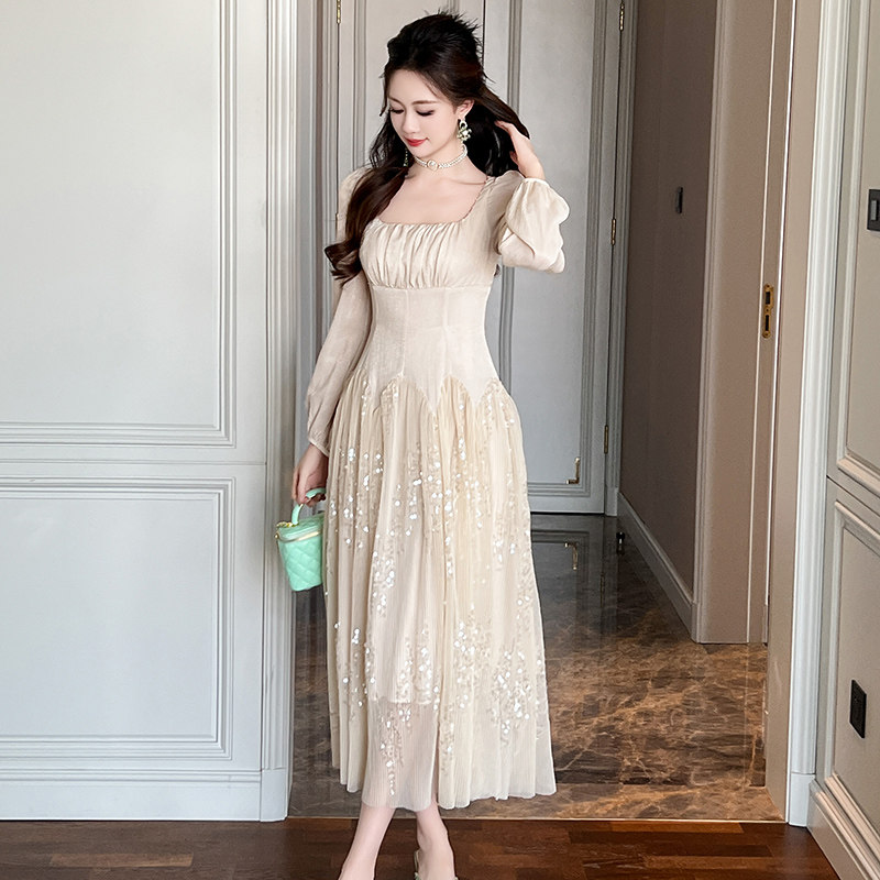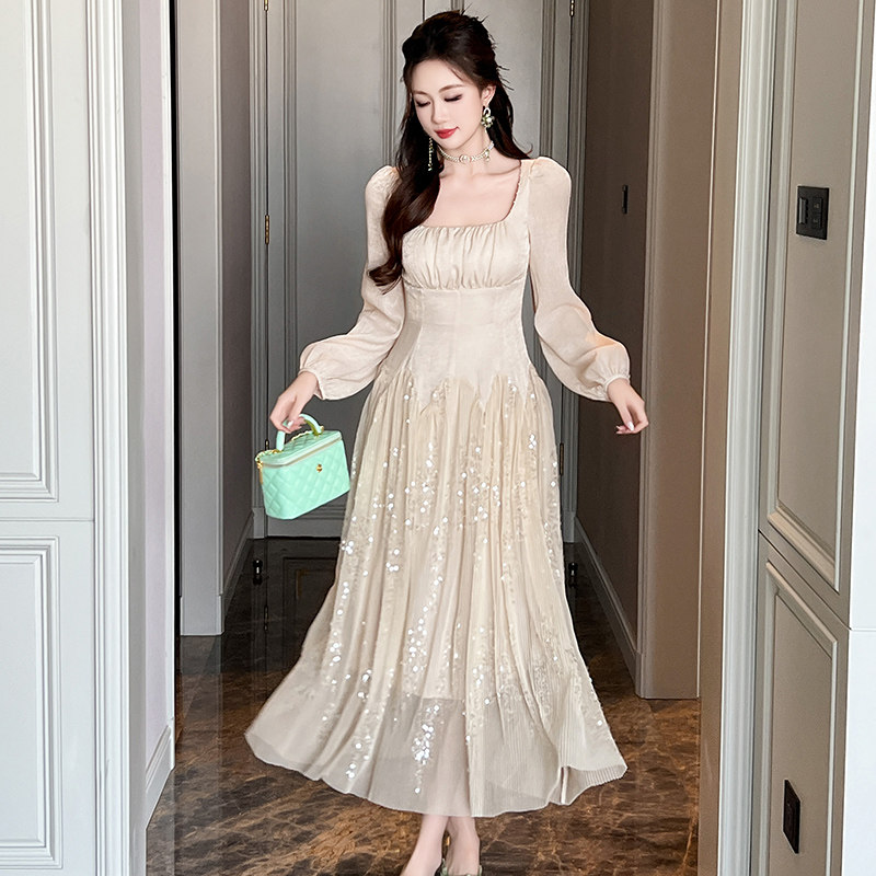 a字收腰连衣裙梨型身材轻奢高级感方领御姐风情万种法式气质长裙