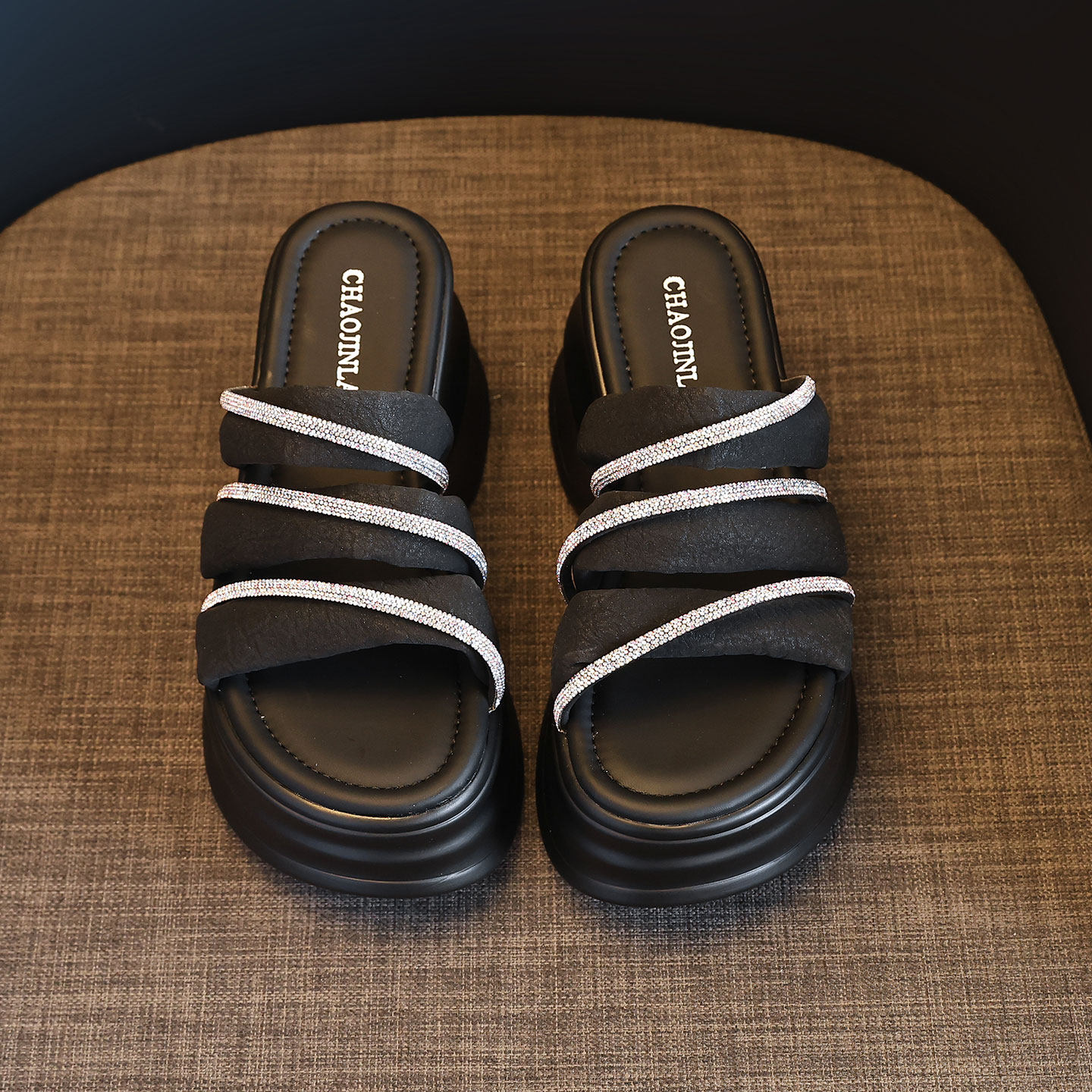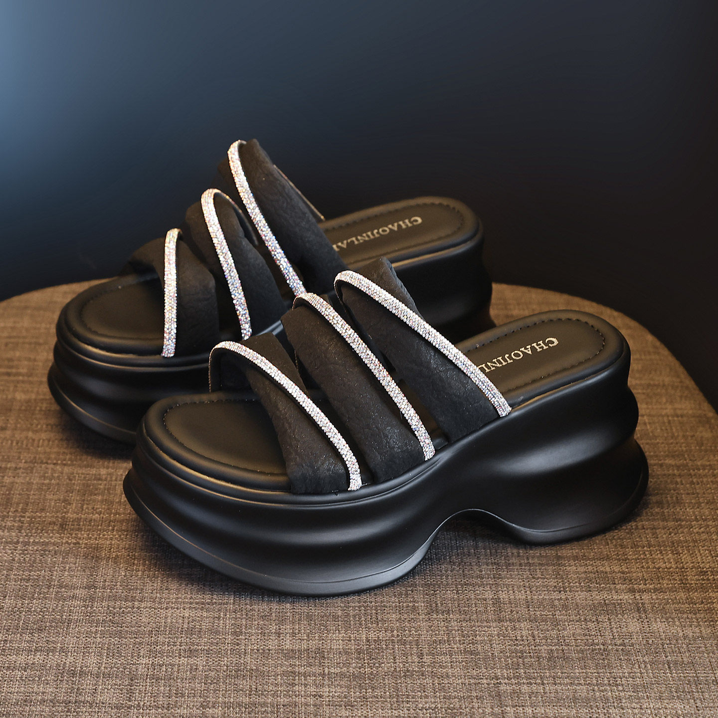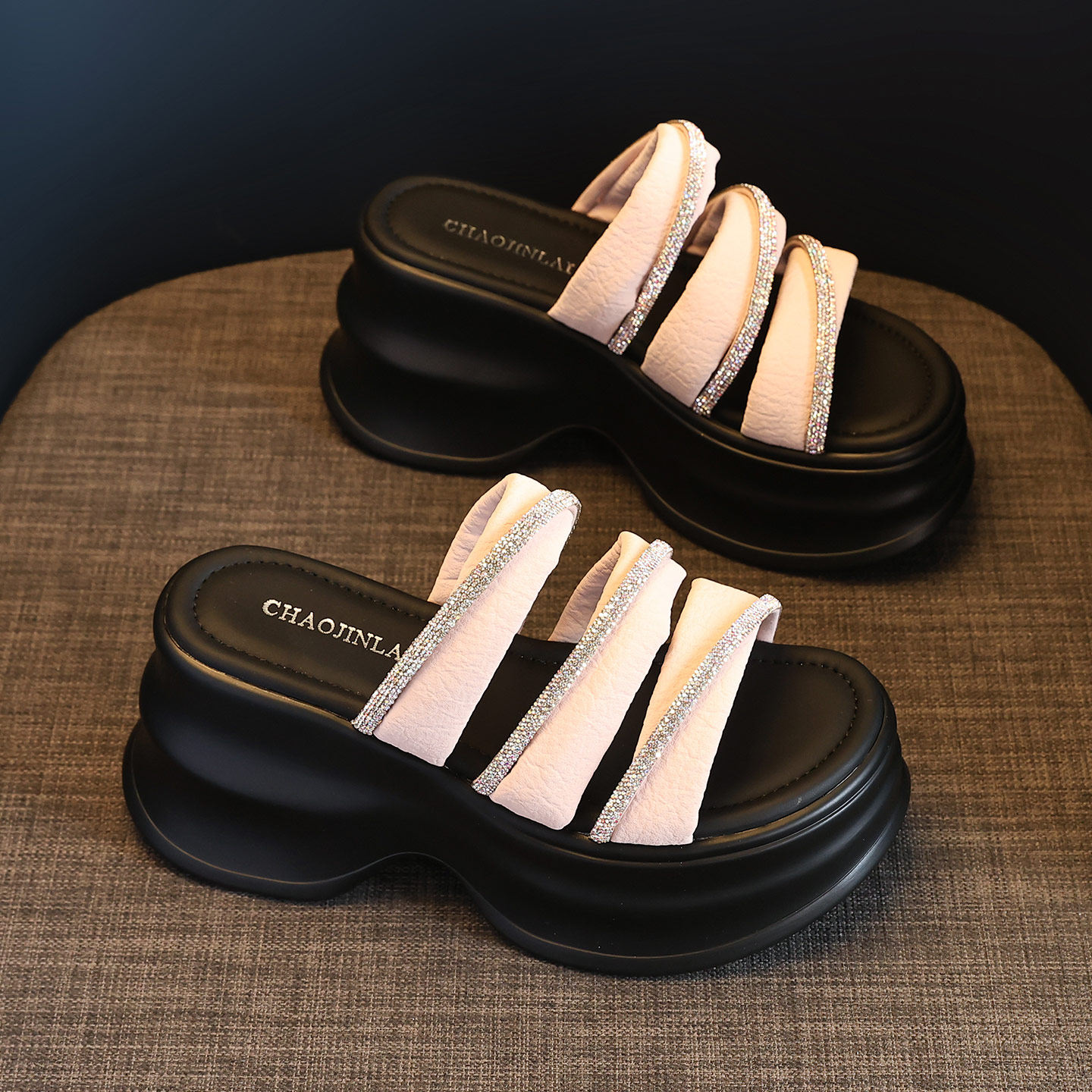 10CM香港正品内增高拖鞋女2026夏季新款小个子厚底水钻外穿凉拖鞋