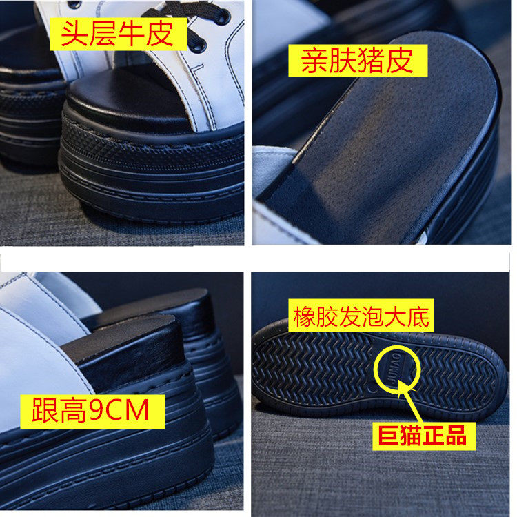 小个子增高外穿凉拖鞋女2026夏季新款松糕厚底10CM真皮纯黑色拖鞋