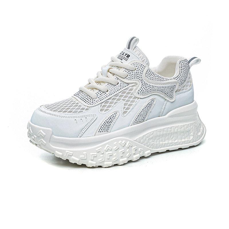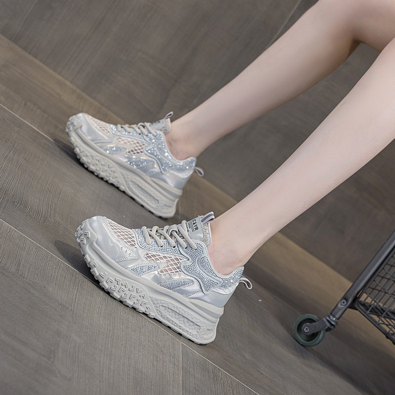 内增高小白鞋女士夏天穿的鞋子显高显瘦网面透气休闲运动老爹鞋潮
