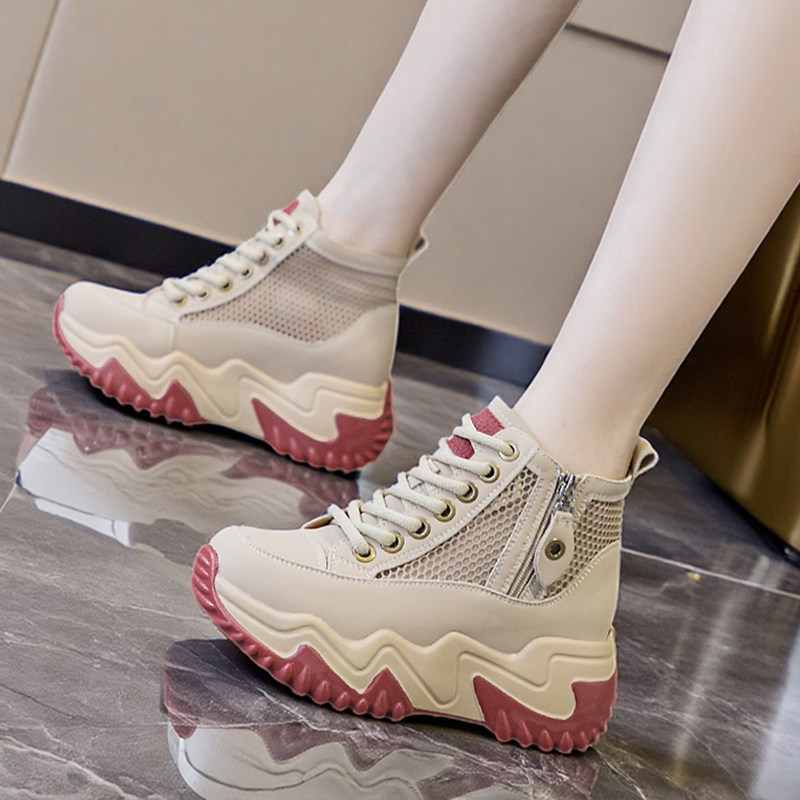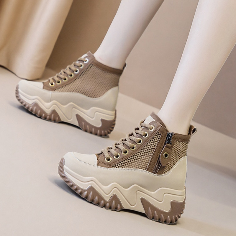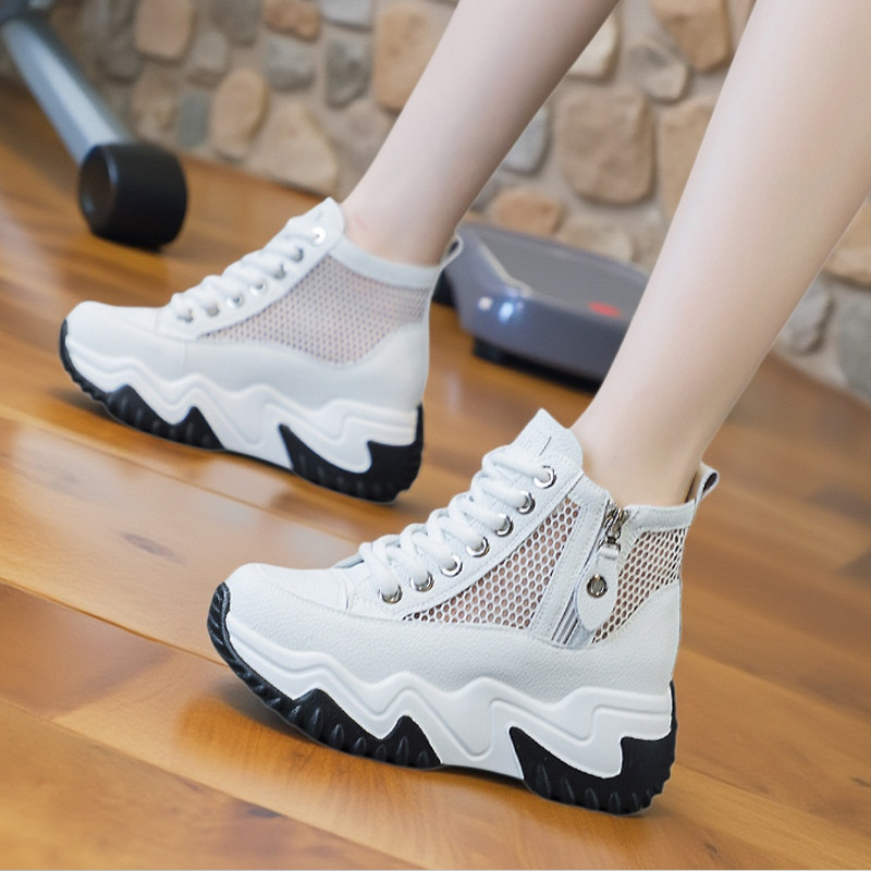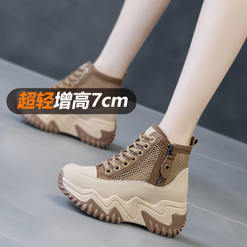 网面透气短靴女款新款软底高帮休闲运动鞋夏天薄款女士内增高网鞋