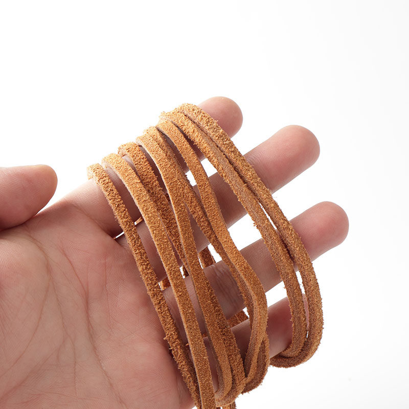 HIBERNI品牌真皮毛面方形牛皮鞋带浅棕色鹿皮麂皮绒质感精品盒装