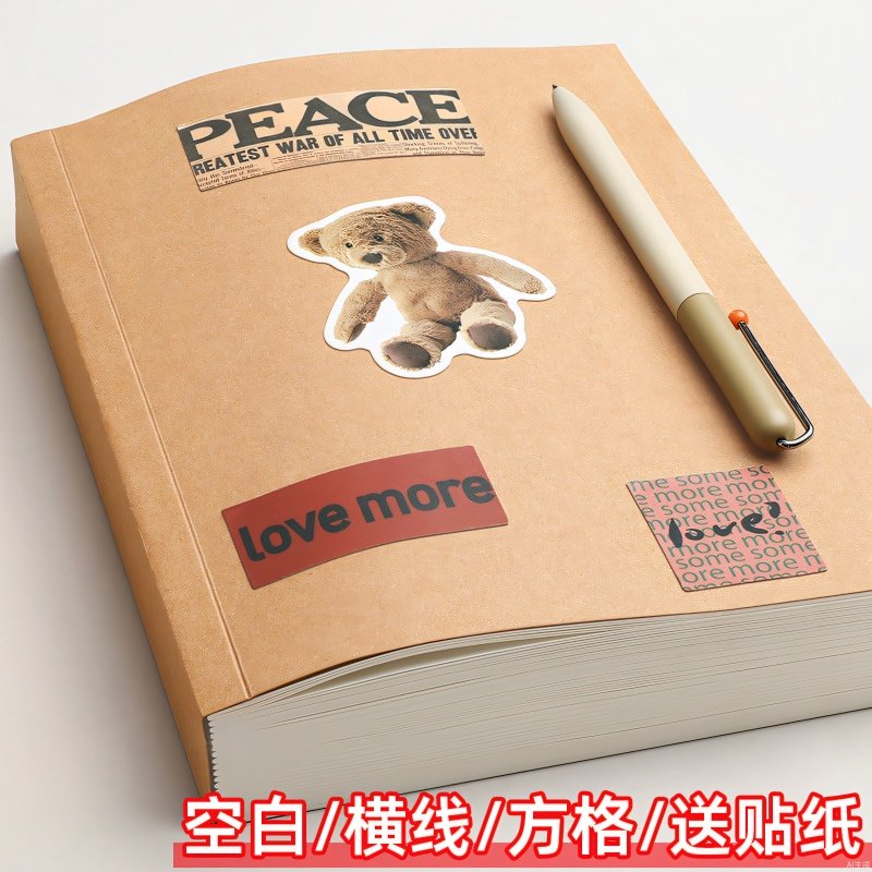 复古牛皮纸笔记本子空白本简约记事本高颜值A5草稿本加厚横线内页