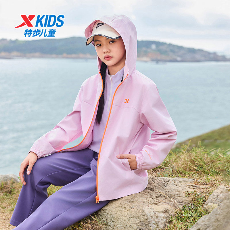 特步童装儿童外套女童2026春装秋季新款户外防风运动薄款风衣连帽
