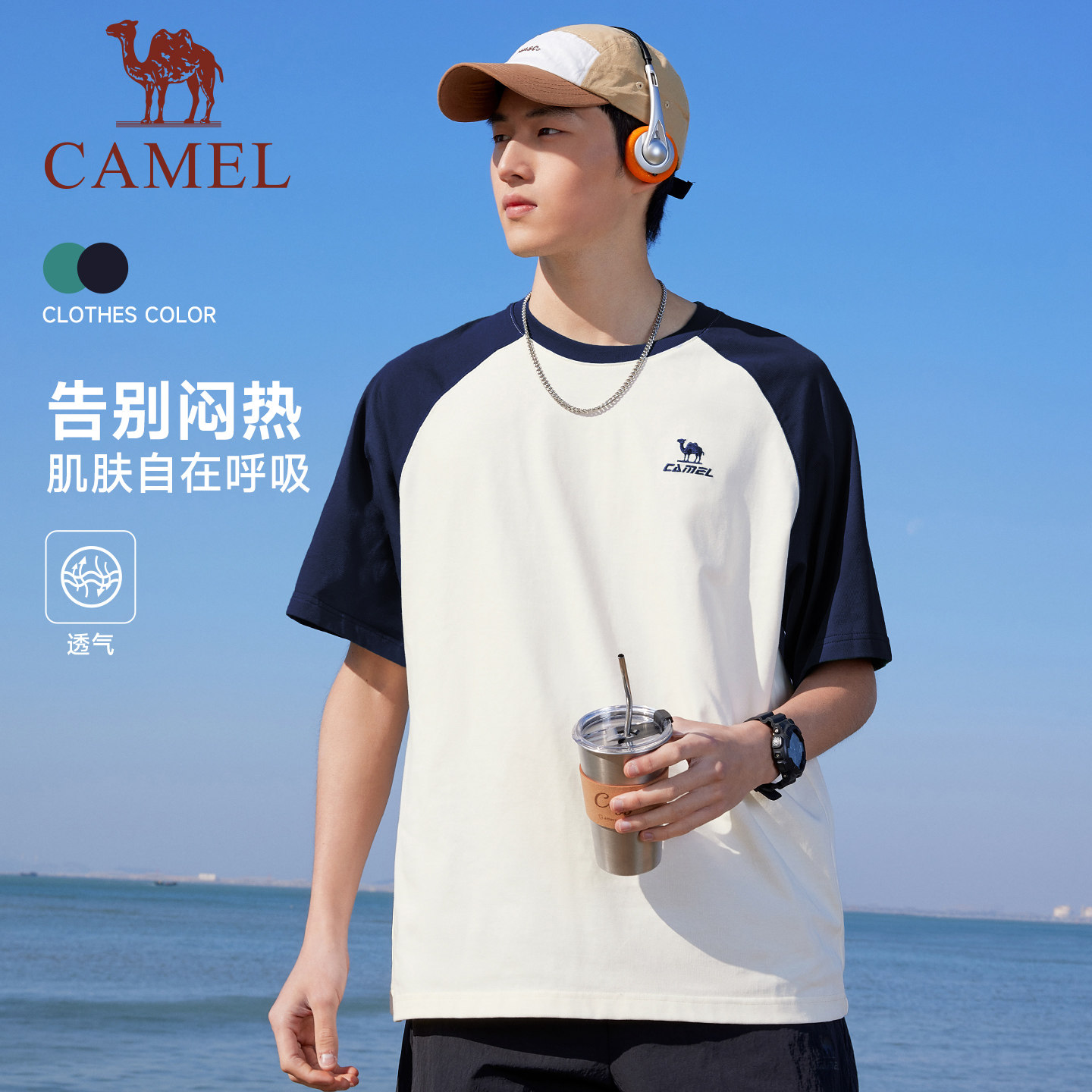 骆驼运动休闲短袖T恤男款女款2026夏季新款户外透气棉感宽松上衣