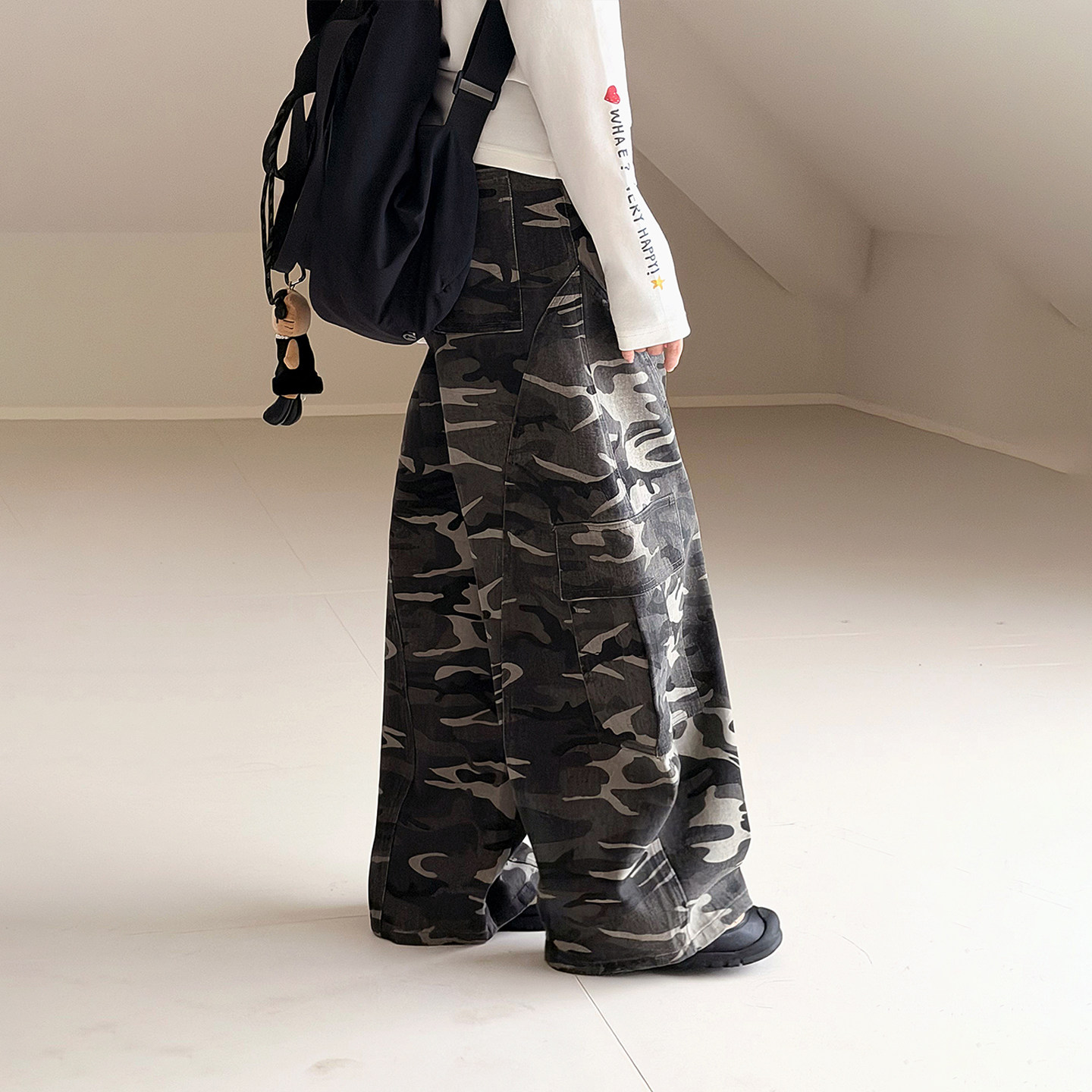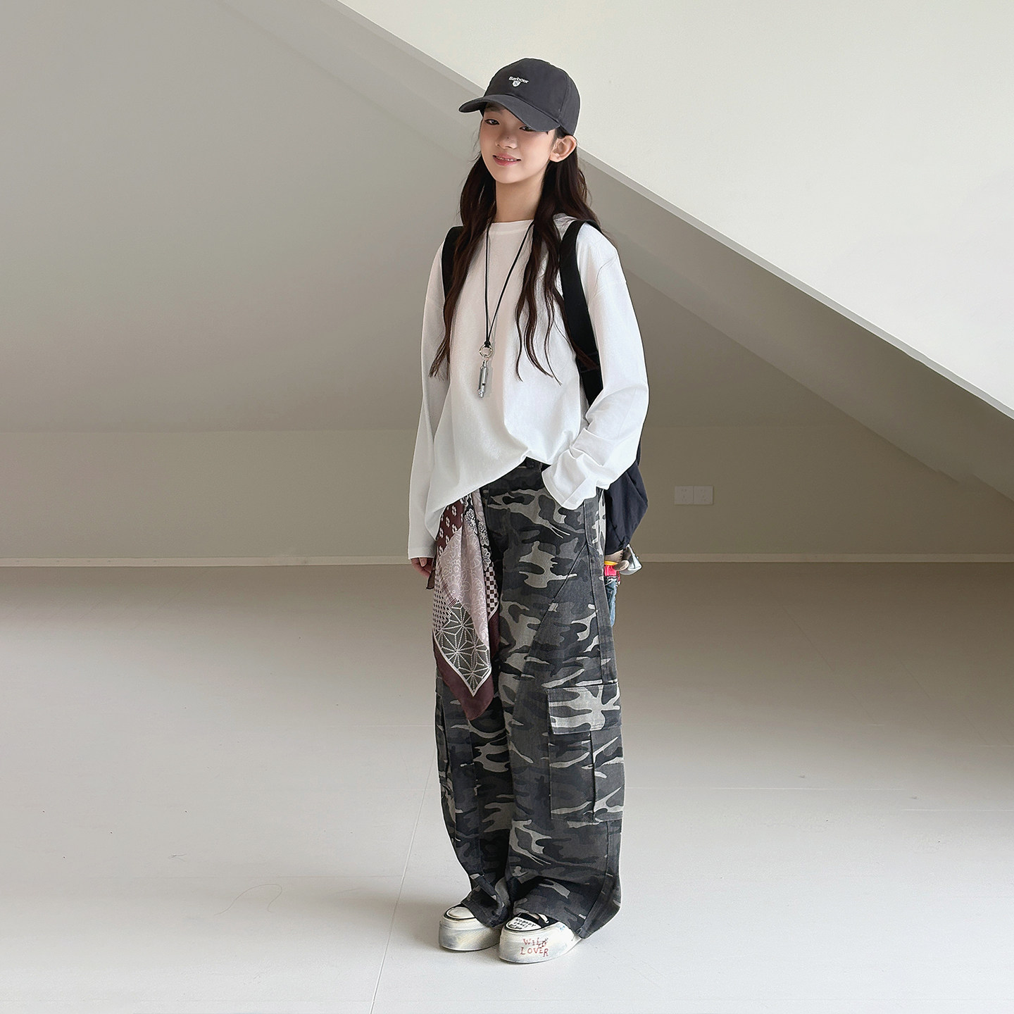 【迷彩】初中生女牛仔工装裤2026春装新款青少年休闲弯刀裤长裤子