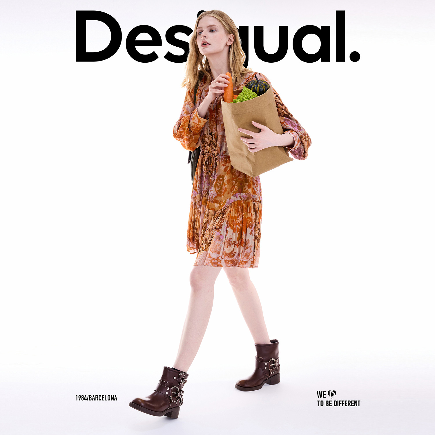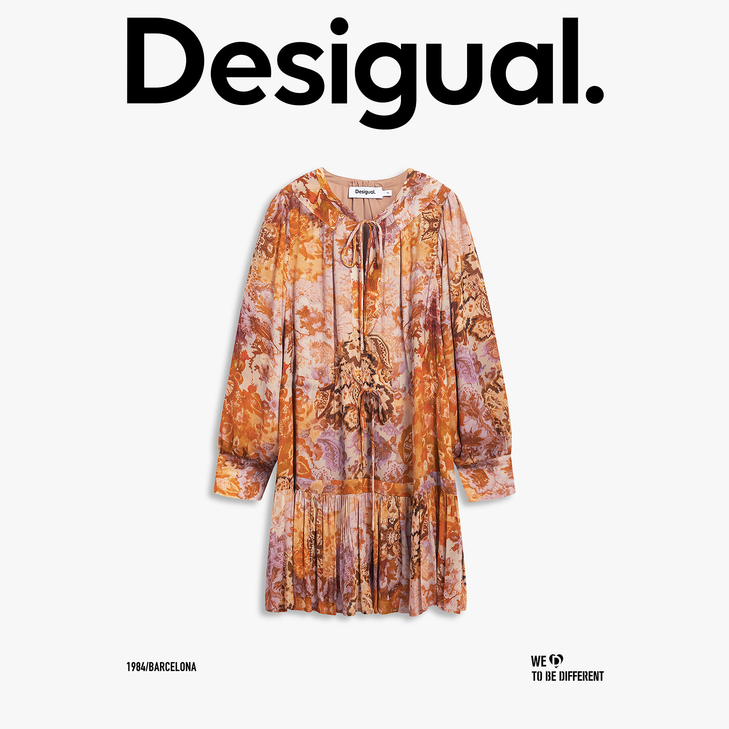 Desigual大西瓜【明星同款】复古印花长袖V领连衣裙