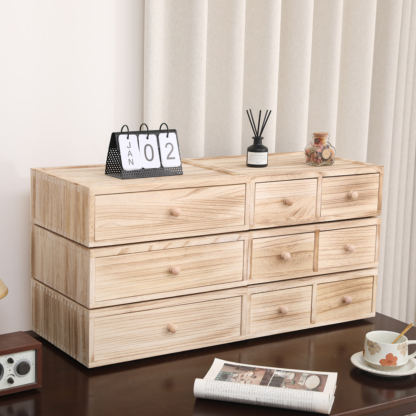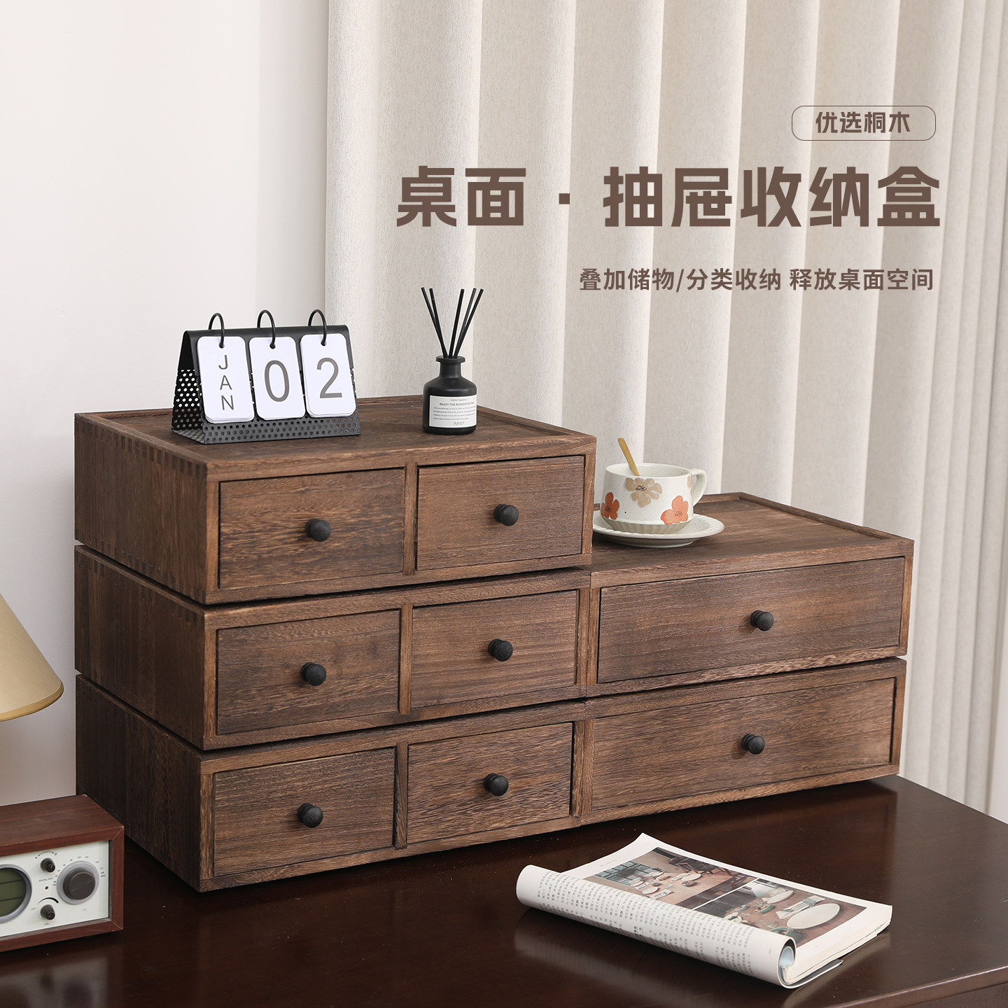 实木桌面收纳盒大容量抽屉式置物柜A4纸文件办公整理玄关小储物柜