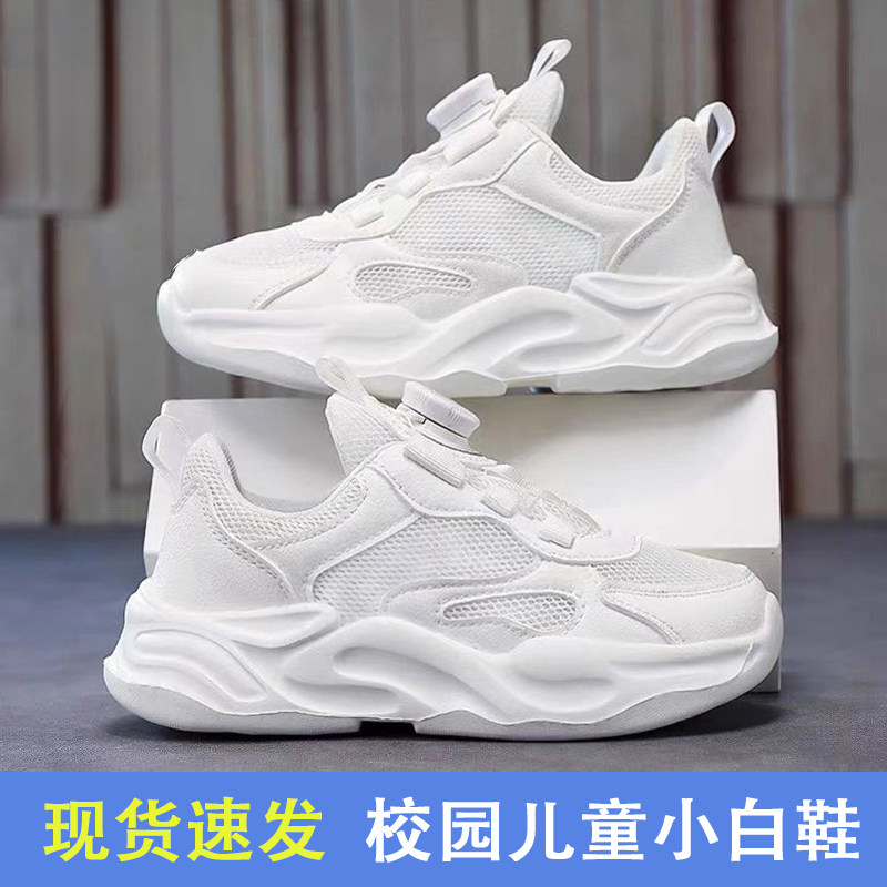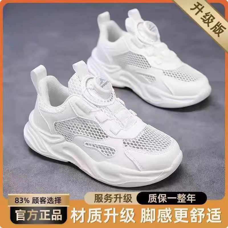 儿童鞋男运动鞋学生小白鞋2026夏季新款网面透气防滑旋转纽扣童鞋