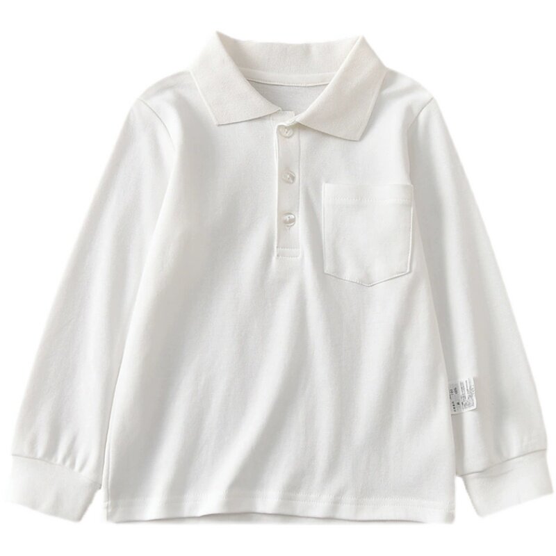 女童纯色POLO翻领打底衫小女孩白色校服内搭上衣男童纯棉长袖衬衫