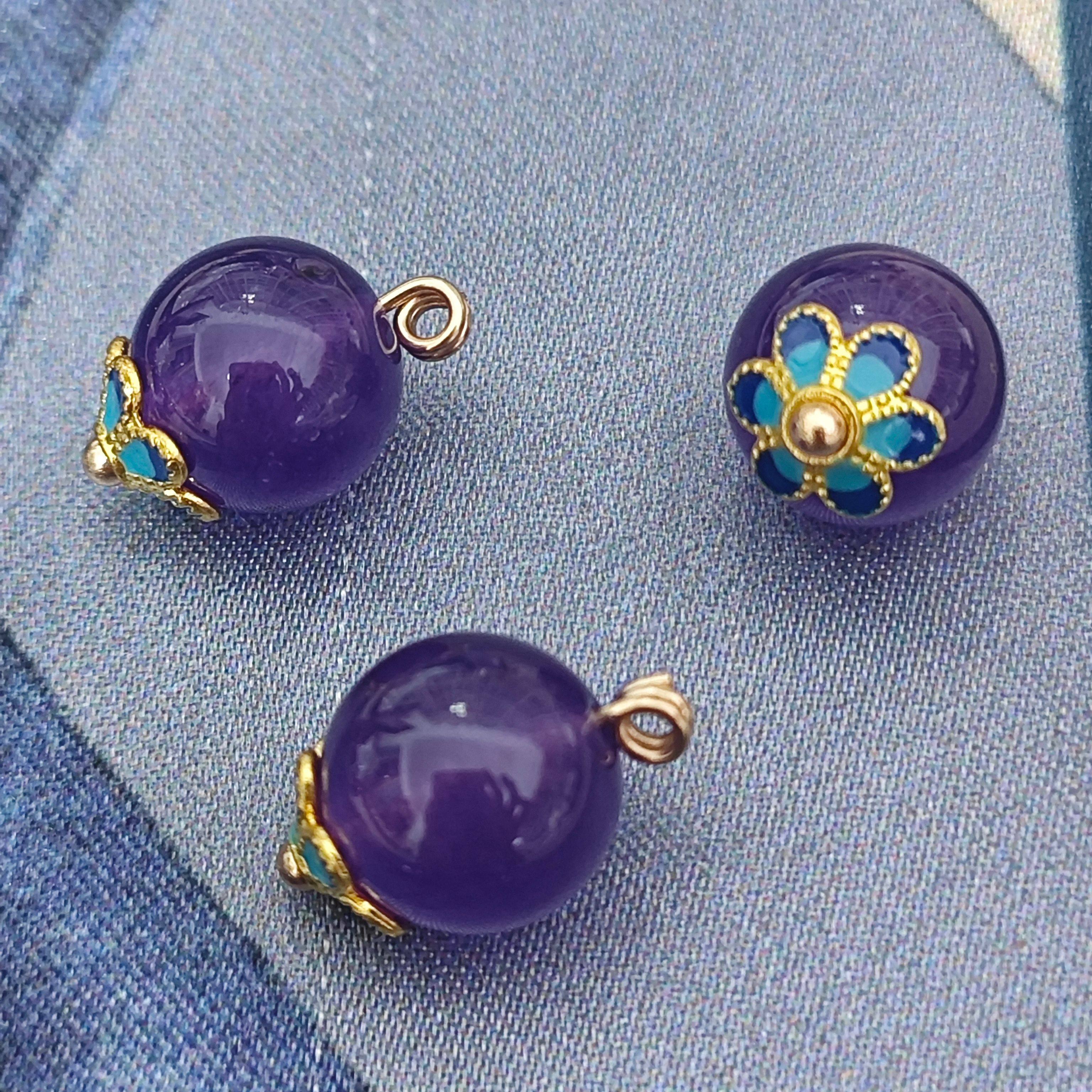 10mm天然石紫色圆珠扣子新中式国风旗袍唐装马甲衬衫大衣扣高端