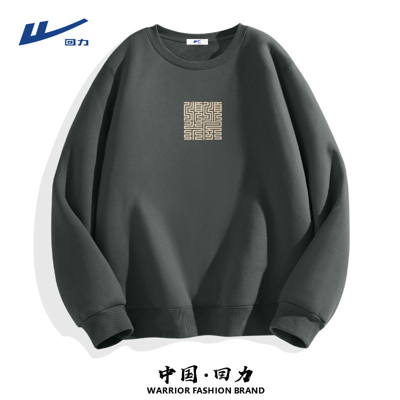 回力圆领卫衣男款春季中式国风高级感大码正肩宽松潮牌黑色外套Y
