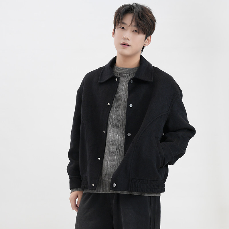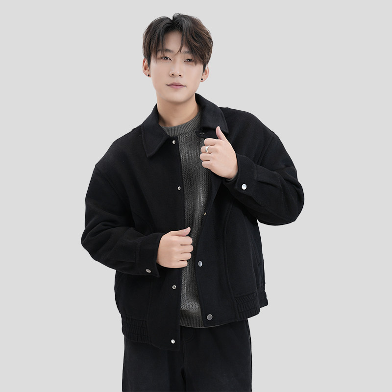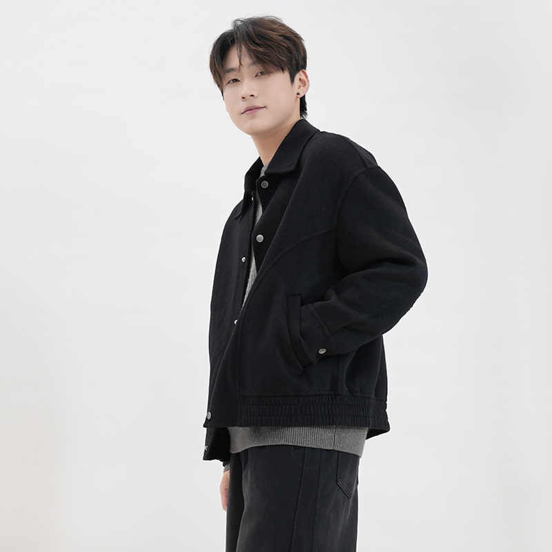 IRA2026春季新款黑色羊毛短款毛呢大衣男款翻领夹克百搭宽松外套