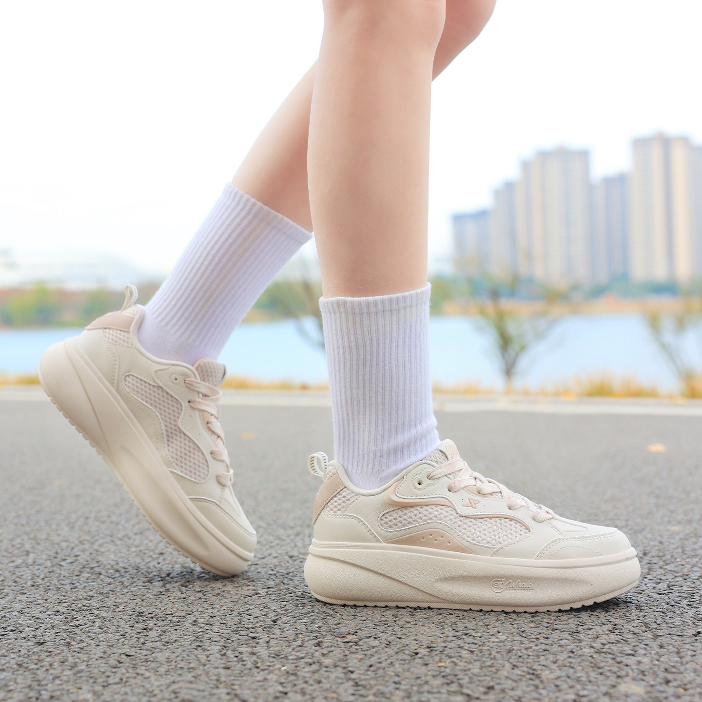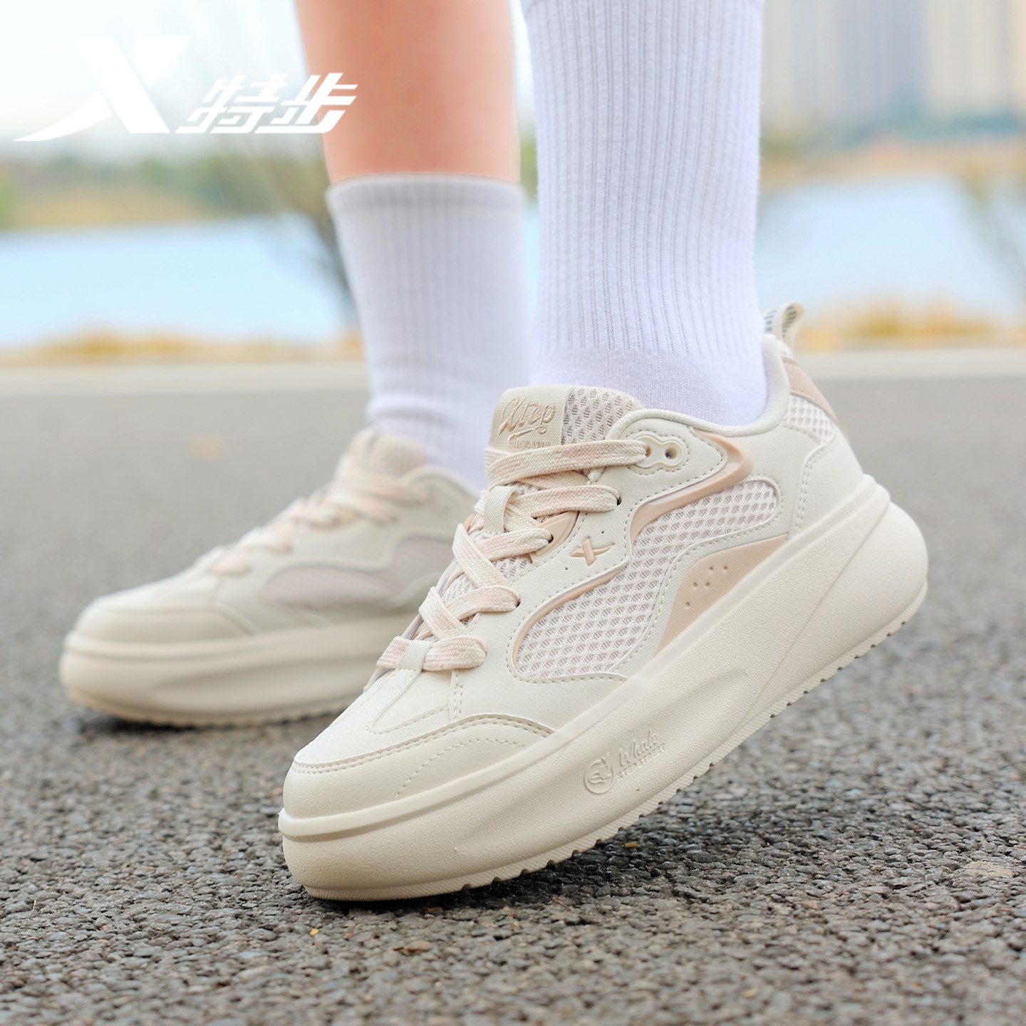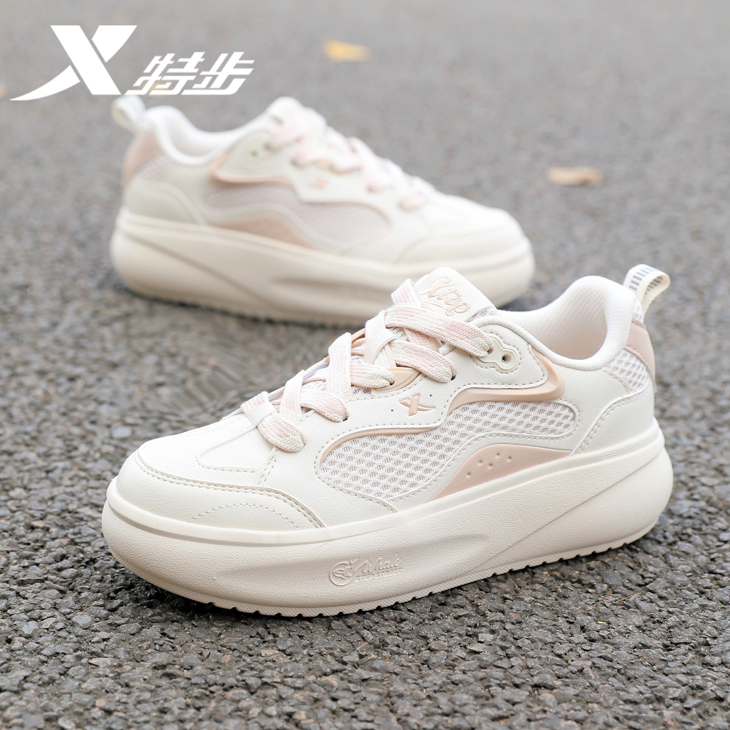 特步女鞋春季2026新款网面透气板鞋厚底增高休闲鞋子轻便运动鞋女