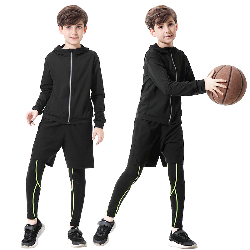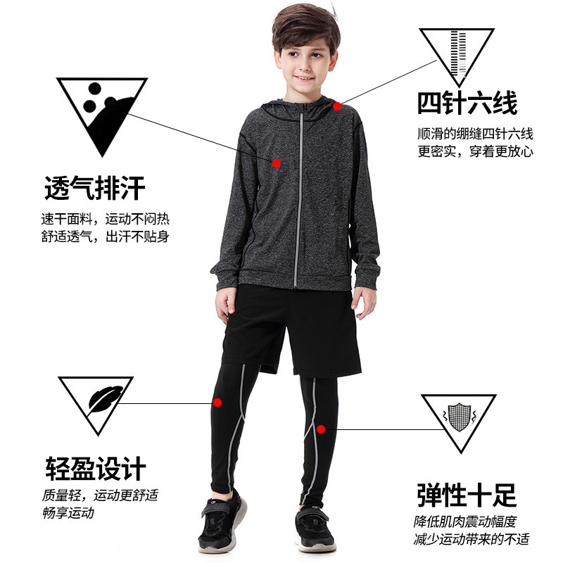 儿童运动速干衣套装男女童篮球足球紧身衣训练服跑步健身服四件套