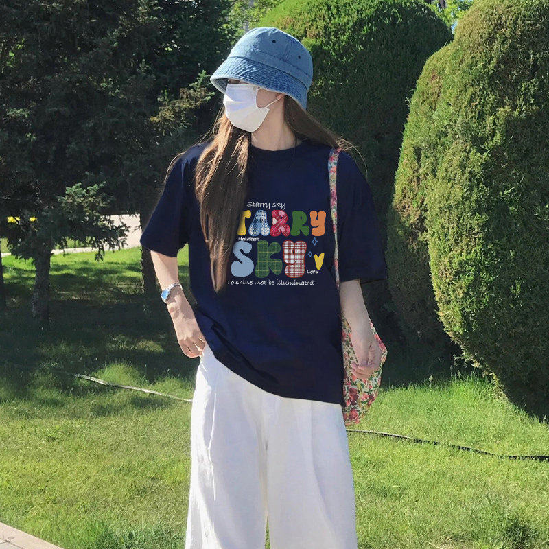 短袖女T恤夏2026新款爆款藏蓝色半袖百搭宽松纯棉绝美漂亮上衣潮