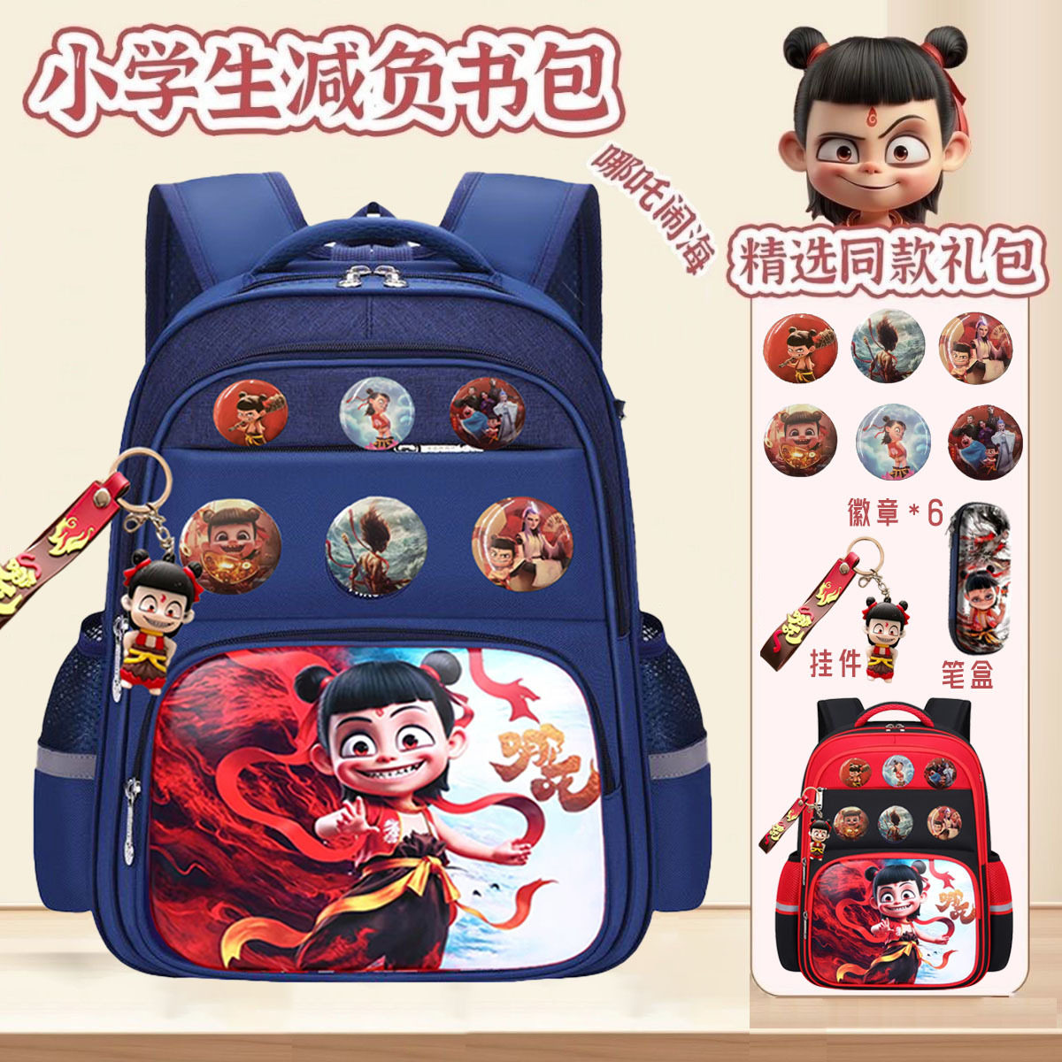 新款哪吒书包男生小学生一二三五六年级儿童大容量轻便幼儿园背包