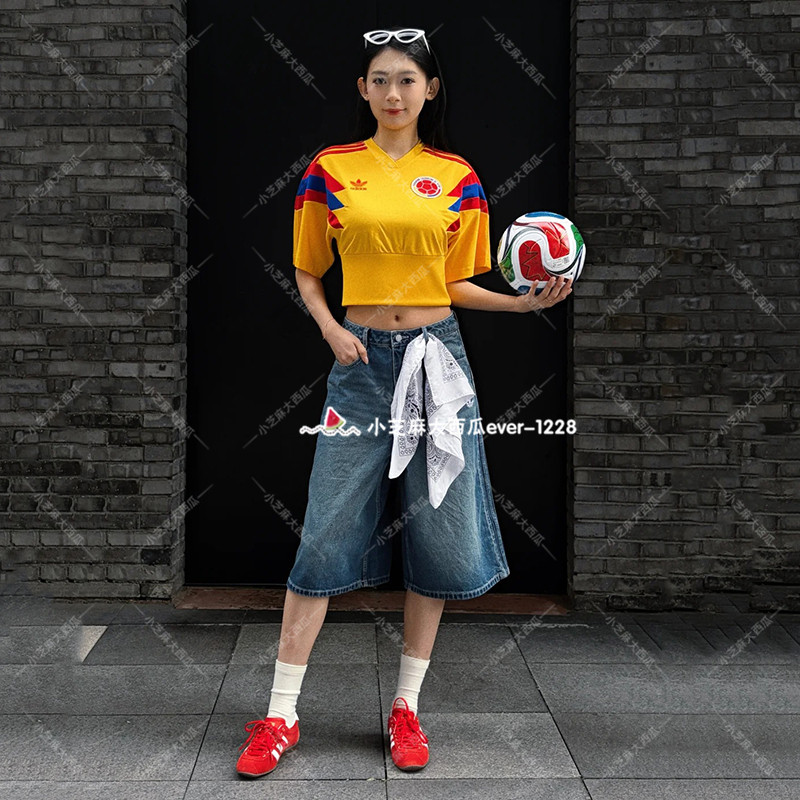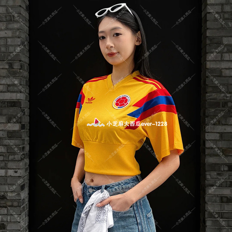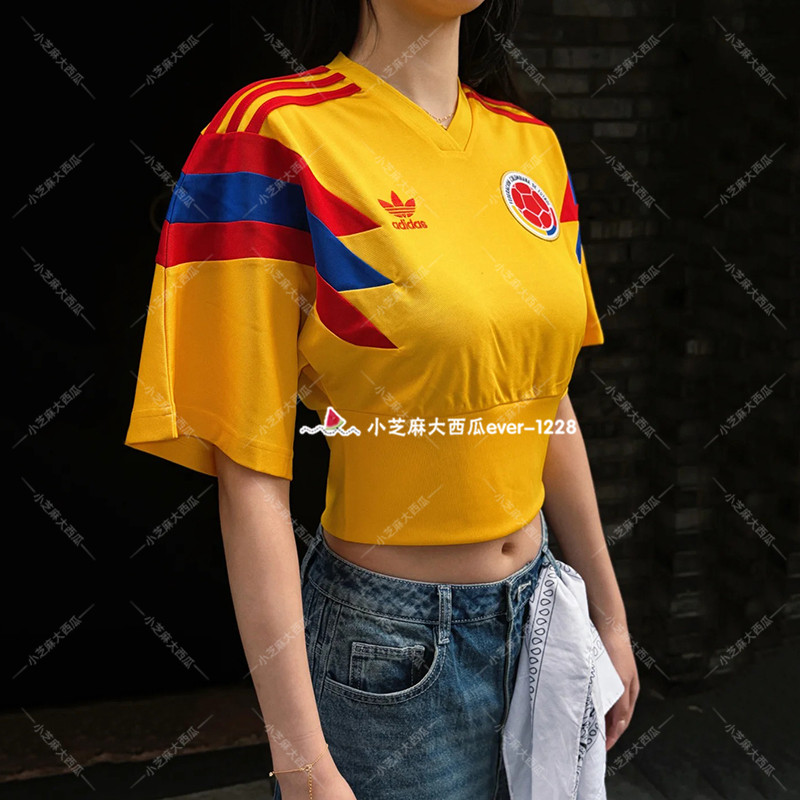 adidas三叶草哥伦比亚队休闲文化复古短袖V领球衣足球衫KE2294