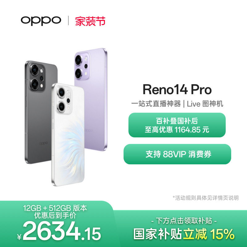 OPPO Reno14 Pro 直播神器手机学生智能拍照手机政府补贴高清长焦实况照片 人鱼姬潮流配色oppo官方旗舰店