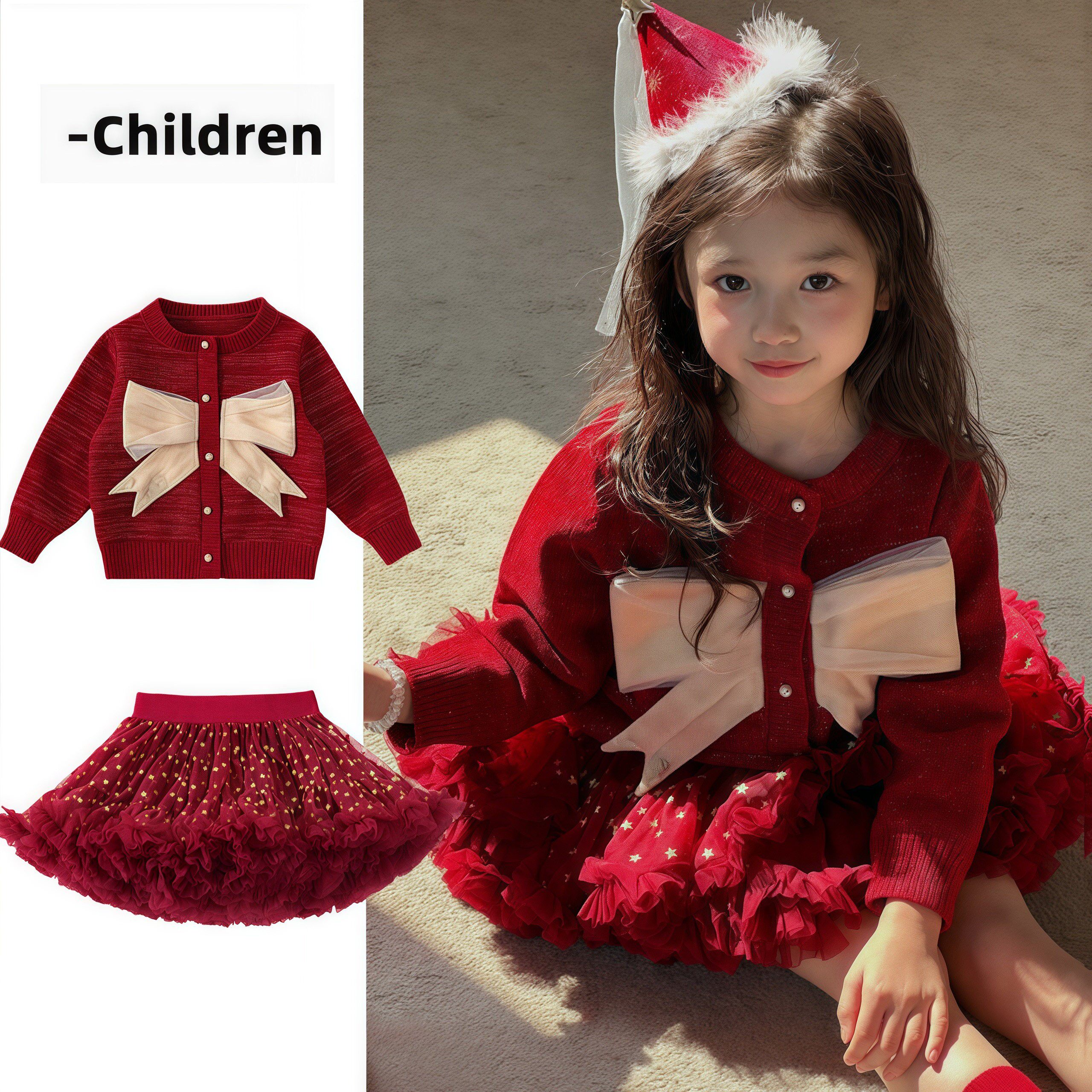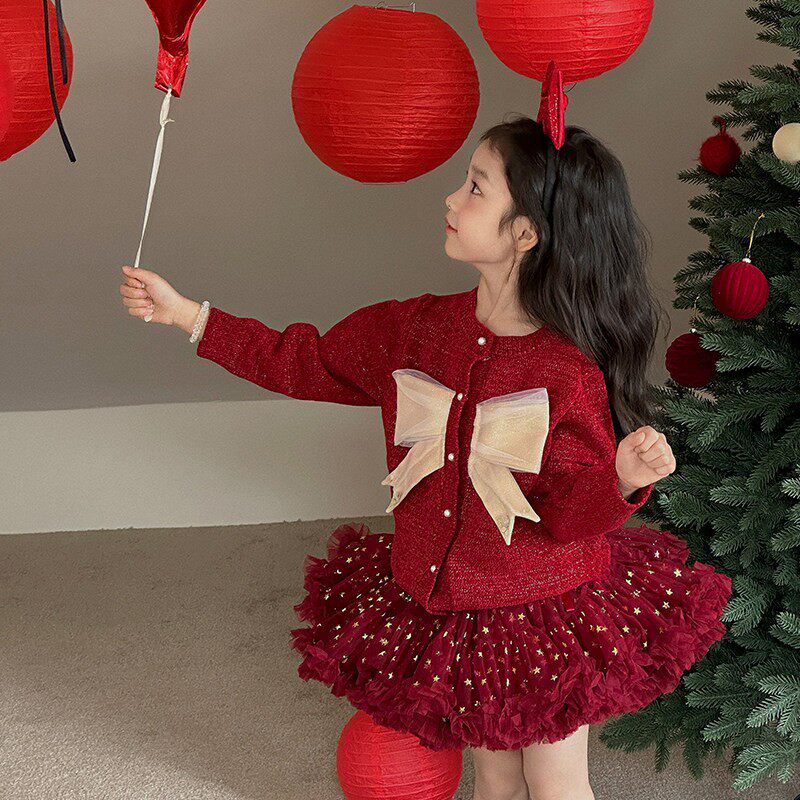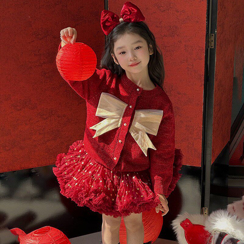 拜年服女童tutu裙套装2026新年衣服洋气儿童公主裙红色毛衣半身裙