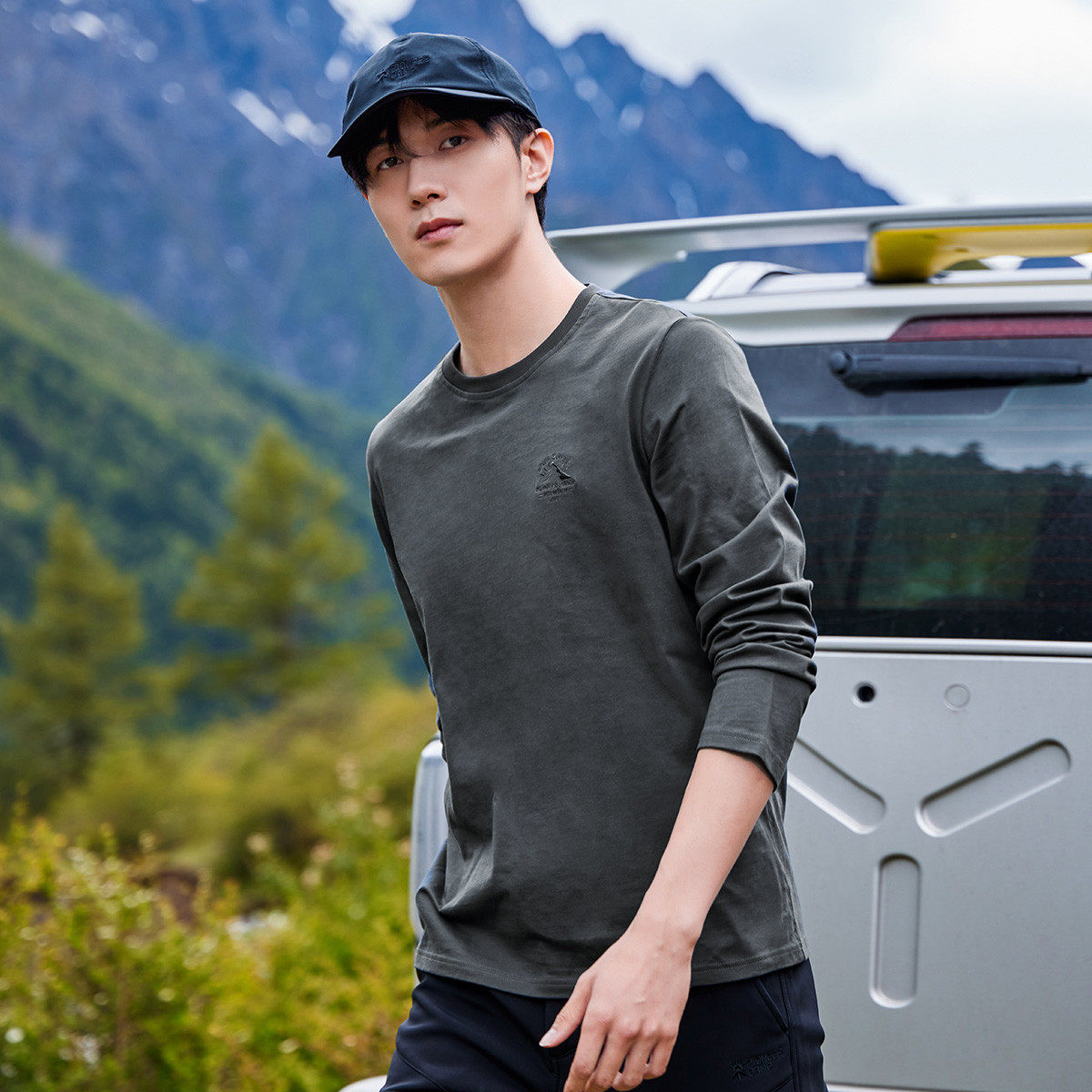 拓路者春秋男款纯棉大码长袖T恤时尚刺绣百搭休闲卫衣运动打底衫