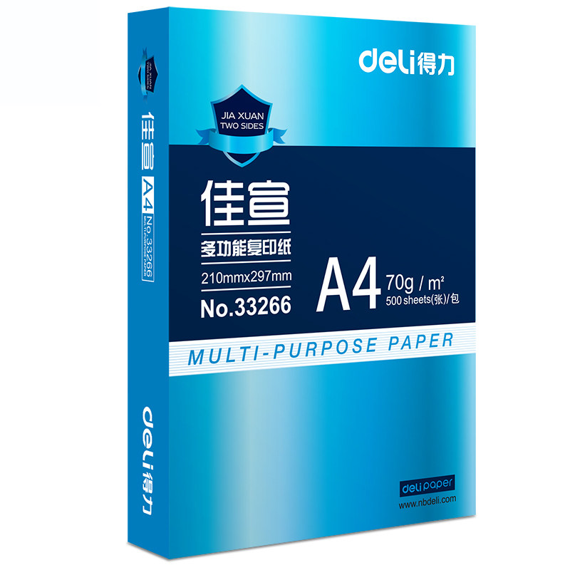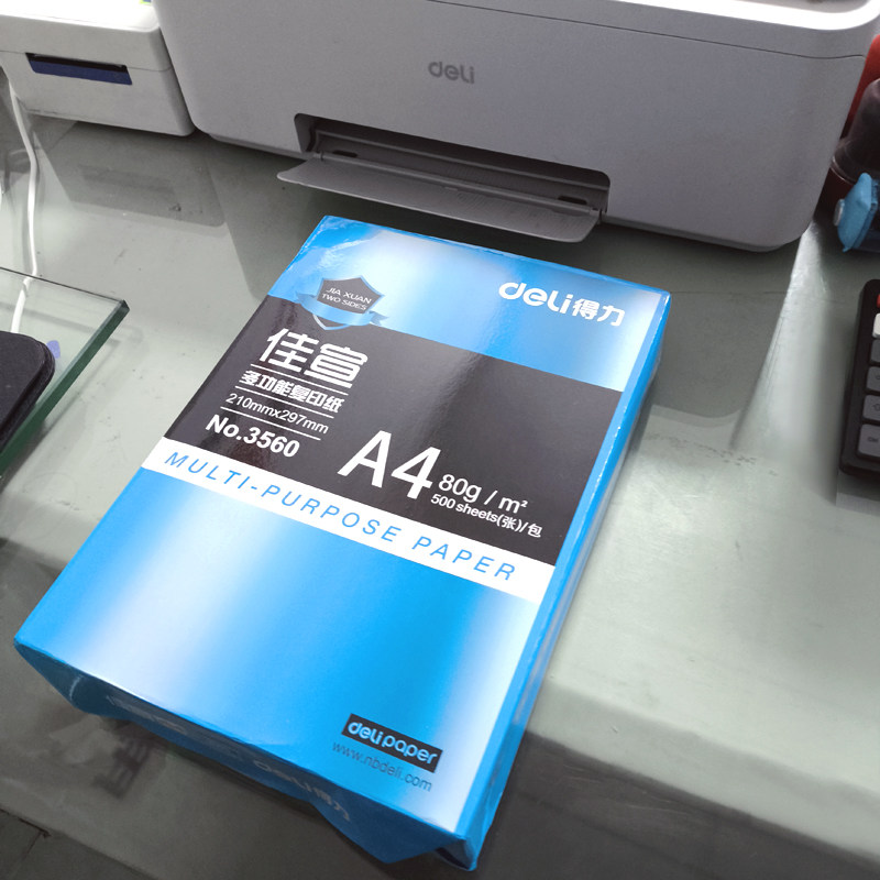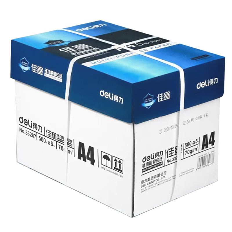 得力A4打印纸整箱珊瑚海白纸5包草稿纸80g双面打印A4白纸 打印机专用70g学生试卷a4纸500张一包通用a4复印纸