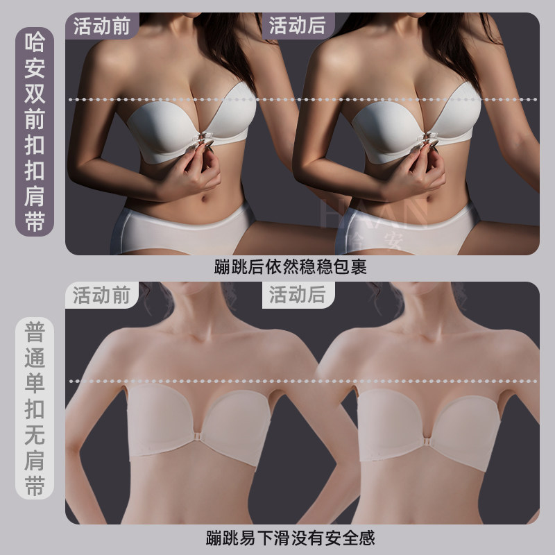 小胸无痕隐形前扣无肩带美背露背防滑聚拢显大内衣女加厚半杯文胸
